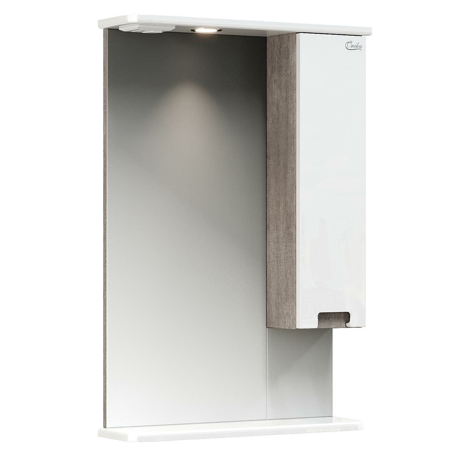 Подвесной зеркальный шкаф Onika харпер 52 поможет обустроить пространство ванной комнаты и привнесет в интерьер ощущение тепла и уюта. Уникальность шкафа в его дизайне: корпус цвета бетона и фактурой мешковины отлично сочетается с белым глянцевым фасадом с закругленными углами.Современный функционал шкафа позволяет удобно расположить все необходимое: справа от зеркала за распашной дверцей с механизмом плавного закрывания расположено отделение для хранения, разделенное на две части горизонтальной полочкой, а под зеркалом - открытая полочка для косметических средств или декоративных элементов.Зеркальное полотно создано на основе серебряной амальгамы, которая обеспечивает качественное изображение, влагостойкость и долгий срок эксплуатации.Источник света шкафа - врезной светодиодный модуль, дополненный механическим выключателем и встроенной розеткой.Корпус шкафа-зеркала выполнен из ЛДСП, фасад - из лмдф в пленке, устойчивых к механическим воздействиям, перепадам температур и высокой влажности.Подвесы для крепления шкафа к стене - в комплекте.