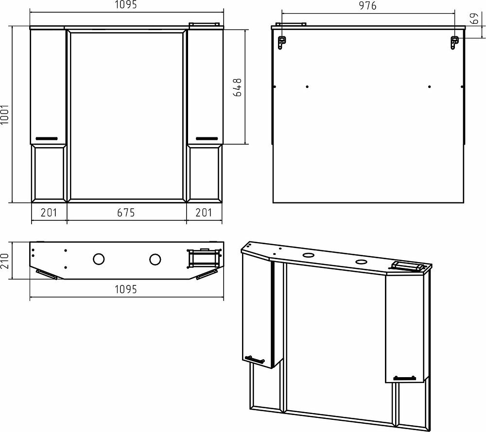 - Размеры (ШхВхГ): 1095х1001х210 мм.