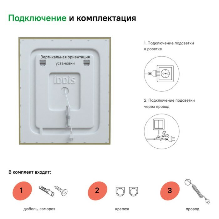 | Оснащение зеркала | С подсветкой, с выключателем |