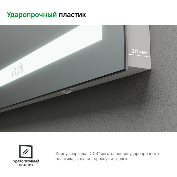 - Выключатель спрятан на торце зеркала.