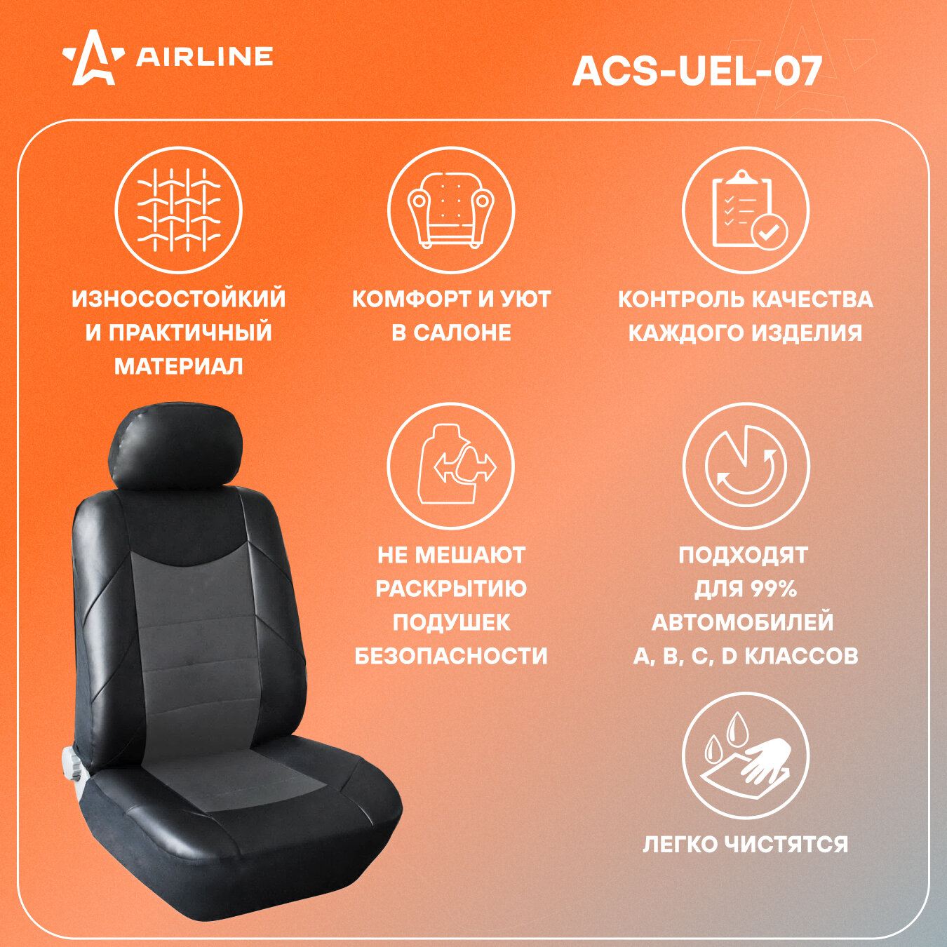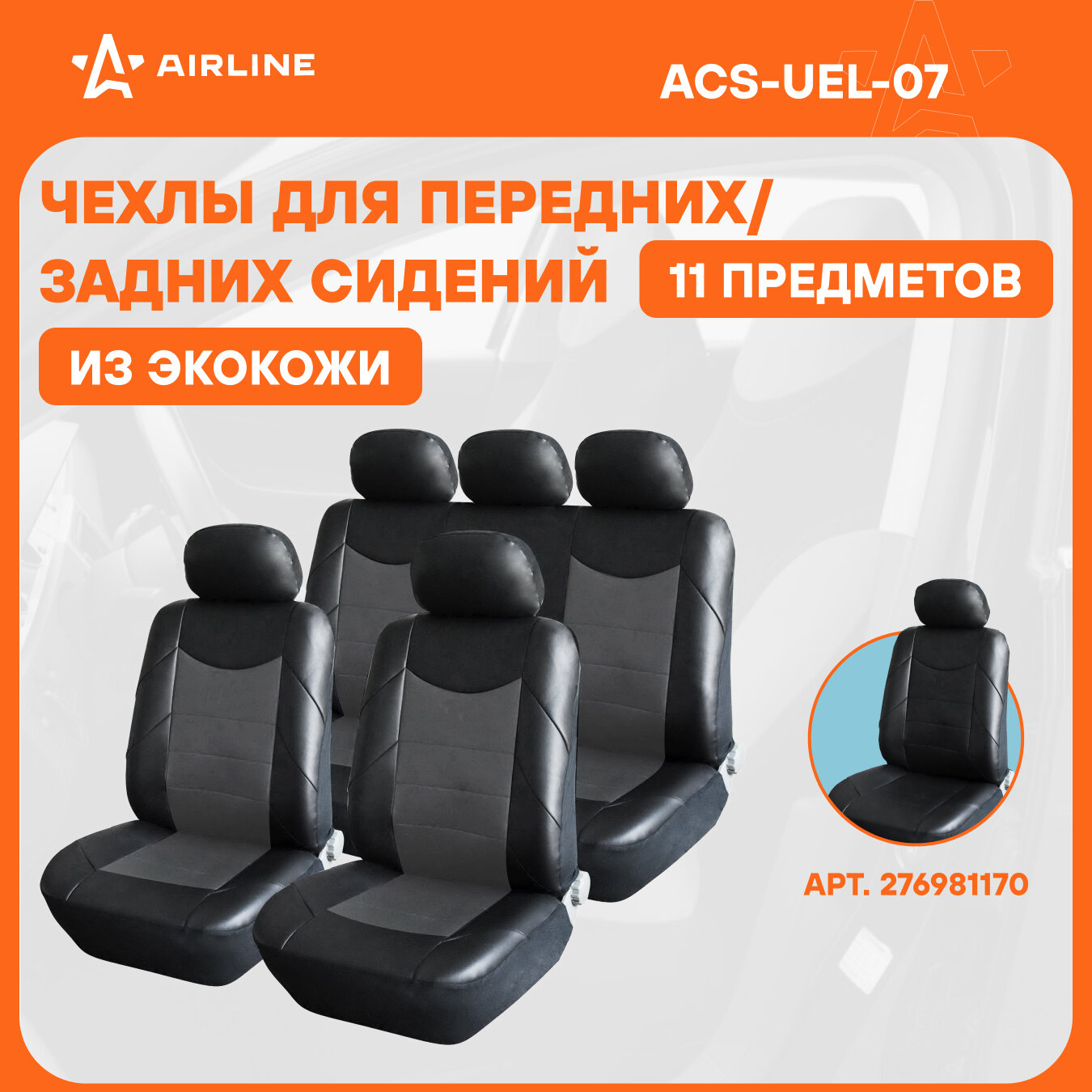 Чехлы для сидений универсальные "CONSUL" 11 пред. искусст.кожа черн./сер. AIRLINE (ACS-UEL-07) (размер: универсальный)