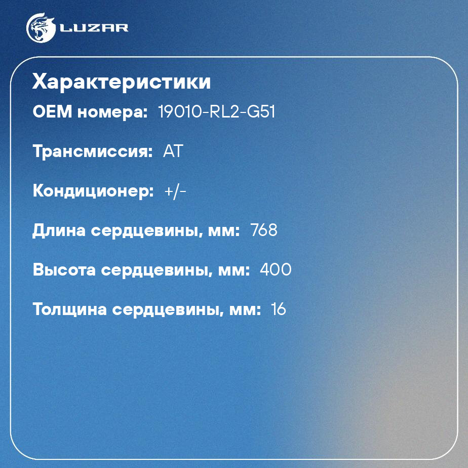 Радиатор охлаждения для автомобилей Accord (08-) 2.0i AT LUZAR (LRc 231L2)