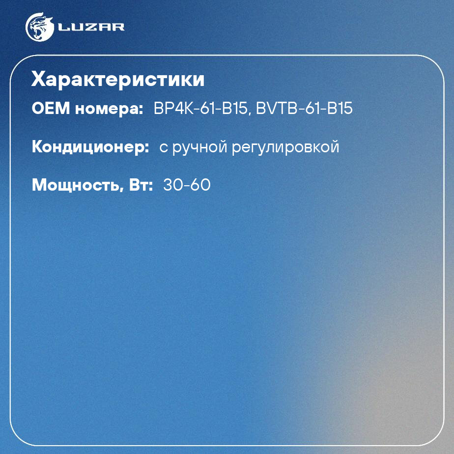 | Сопутствующий товар | Электровентиляторы отопителя:LFh 2540 |