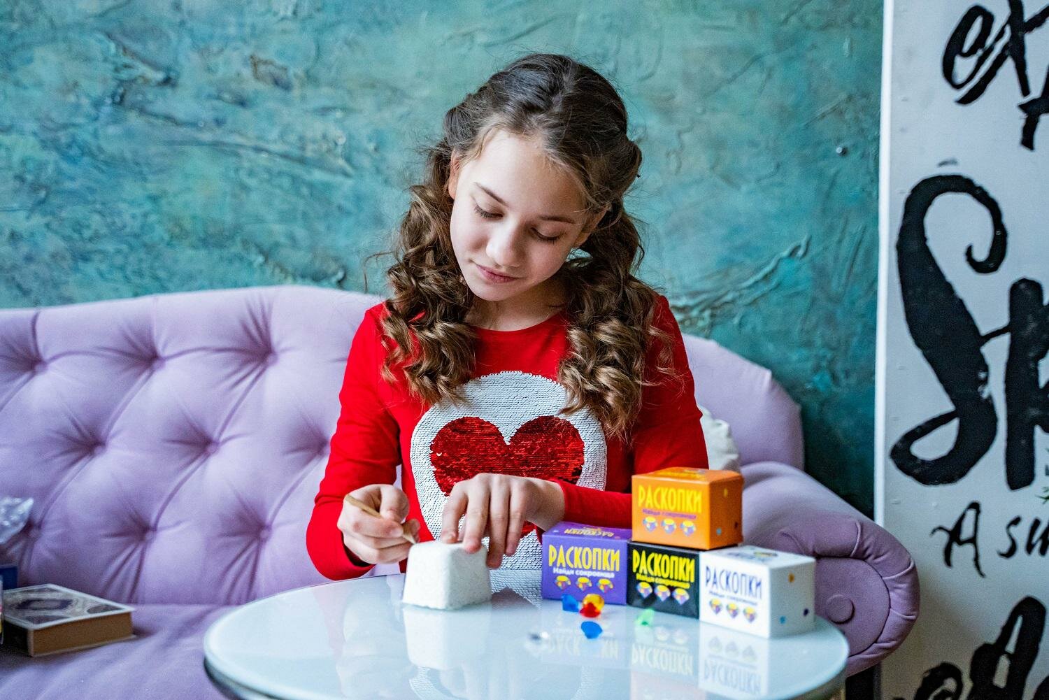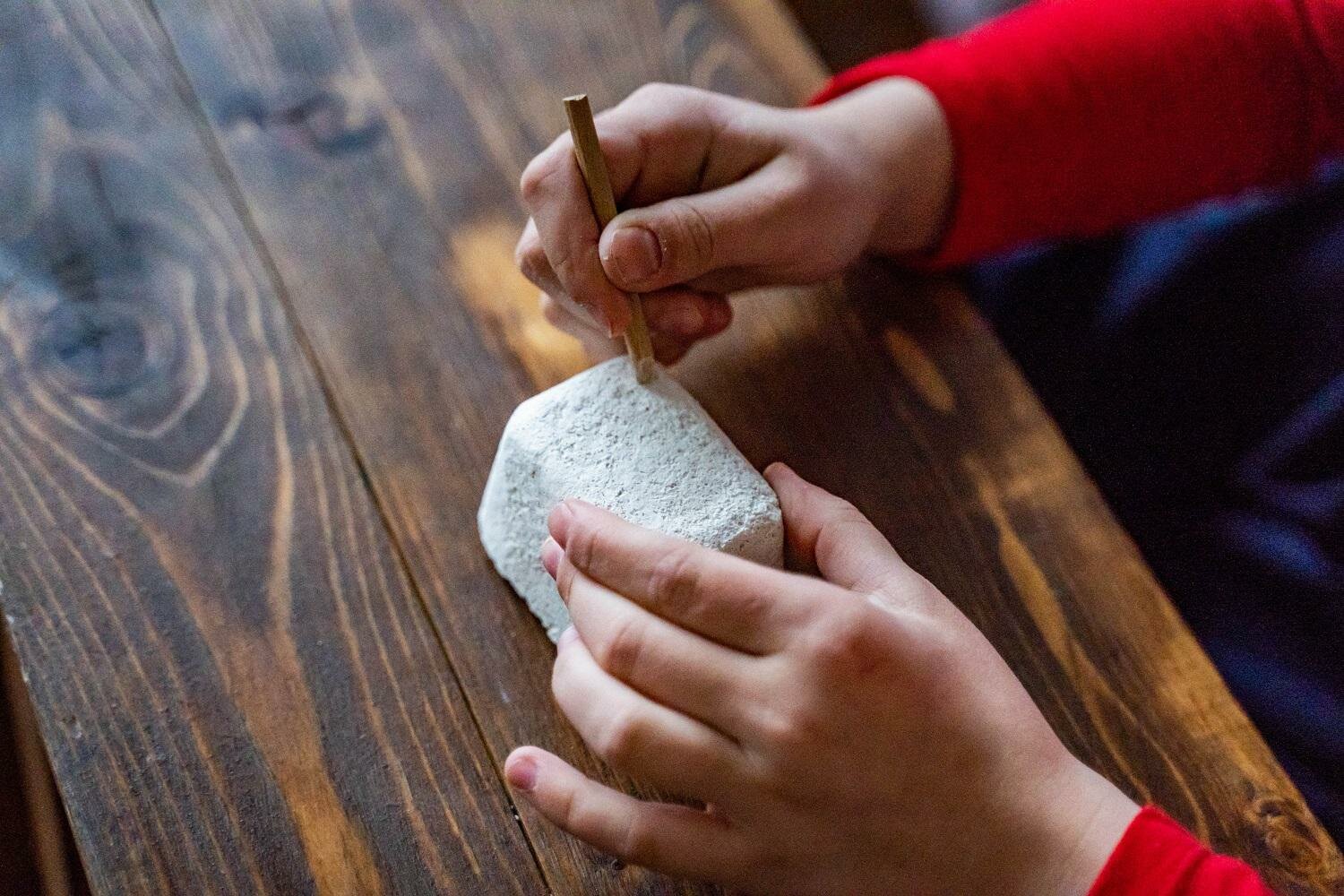 Проведите настоящие археологические раскопки и найдите сокровища! В наборе уже есть необходимый инструмент. Вам остается только набраться терпения и аккуратно слой за слоем снять окаменелый грунт, чтобы отыскать их все. Для того чтобы проводить раскопки было проще, рекомендуем смочить брусок водой.