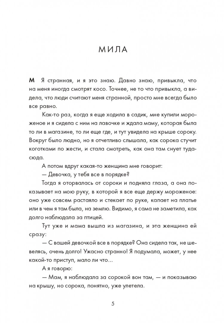 мне книга очень понравилась, мне кажется, важно поднимать такие темы. что вообще такое нормальность? её же не существует. это "мера измерения", придуманная и навязанная обществом. на самом деле у всех нас есть свои странности и особенности. и их надо принимать. вот эта книга очень в этом помогает. она о четырех детях, которые считаются странными. у каждого из них своя особенность. мила - выпадает из реальности во внутренний мир и заменяет книгами друзей. петр - боится темноты и чудищ, а папа его вечно стыдит и сравнивает со смелым братом. у катки - рпп, спасибо маме, которая считает её толстой и пытается изменить. а франта - инвалид и он не может это принять. поэтому постоянно агрессирует и устраивает драки, снимая их и выкладывая в интернет. сразу столько актуальных внутренних проблем. мне кажется, многие люди могут увидеть себя в ком-то из этих детей. я точно увидела. в общем, советую обратить на эту книгу внимание, она правда очень хорошая и стоящая.