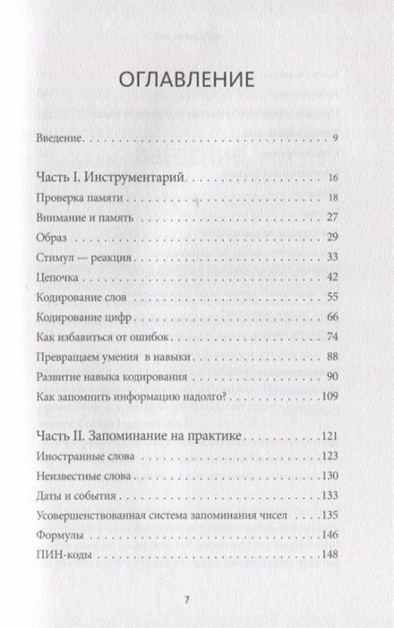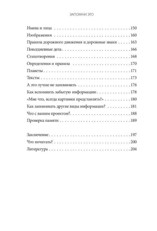 В первой части, "Инструментарии", автор приводит ключевые методики запоминания, вторая - уже практическая. Каждая глава сопровождается заданиями. Бесспорно, мнемотехник существует несоизмеримо больше, чем здесь представлено. Да только нет надобности в огромном количестве. Особенно для начинающих, которым в первую очередь порекомендую книгу. Для них "Запомни это" послужит отличным трамплином во Вселенную Мнемоники.