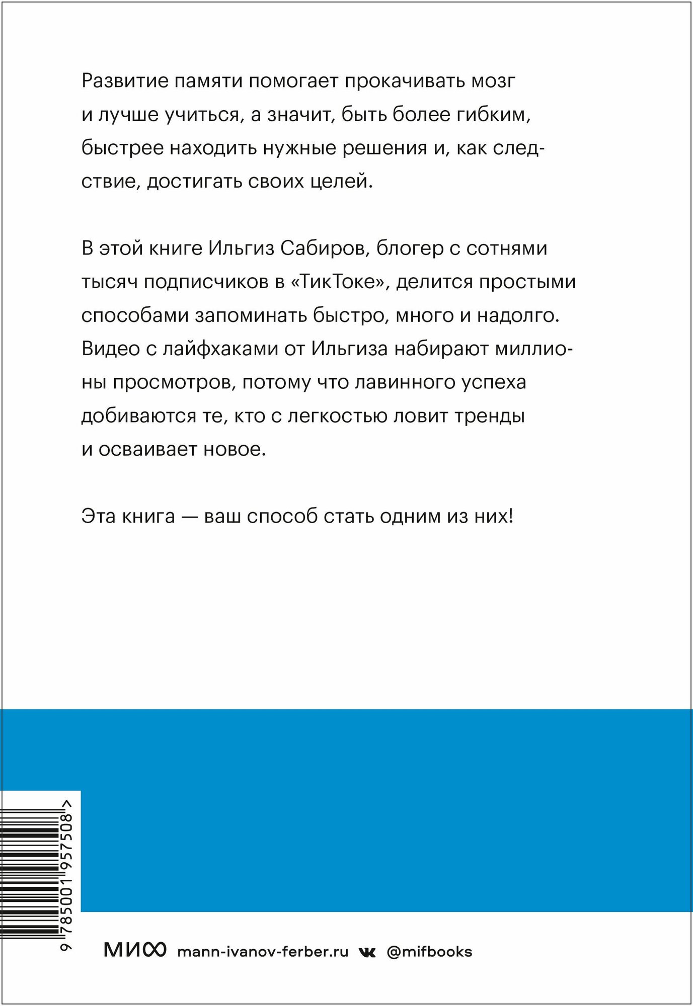 В этой книге Ильгиз Сабиров, блогер с сотнями тысяч подписчиков в «ТикТоке», делится простыми способами запоминать быстро, много и надолго.