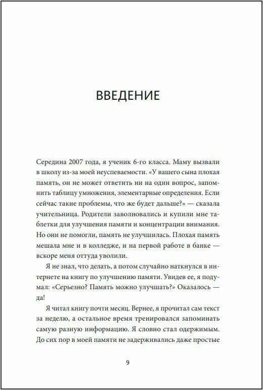 Начал чтение 5 дней назад, сегодня закончил, и хочу сказать, что с этой книги я получил больше пользы, чем с предыдущих 5и прочитанных. Возможно это не самая насыщенная книга, в других было больше техник запоминания, но они больше путали, чем давали пользы. В этой же книге меньше техник запоминания, но к концу прочтения я их полностью освоил, отработал на практике и сегодня даже самостоятельно запомнил 30 иностранных слов шведского языка за утро. -