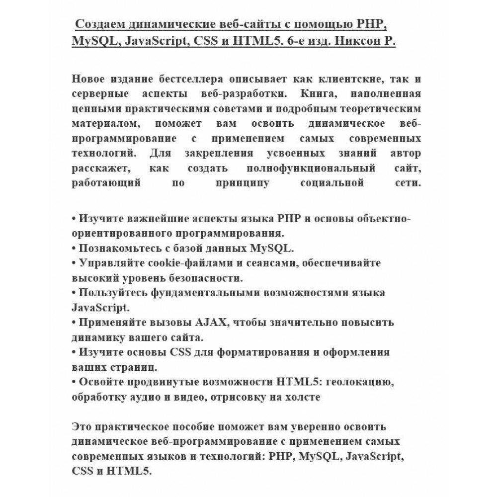 Создаем динамические веб-сайты с помощью PHP MySQL JavaScript CSS и HTML5 (Робин Никсон); Питер (Айлиб), 2013