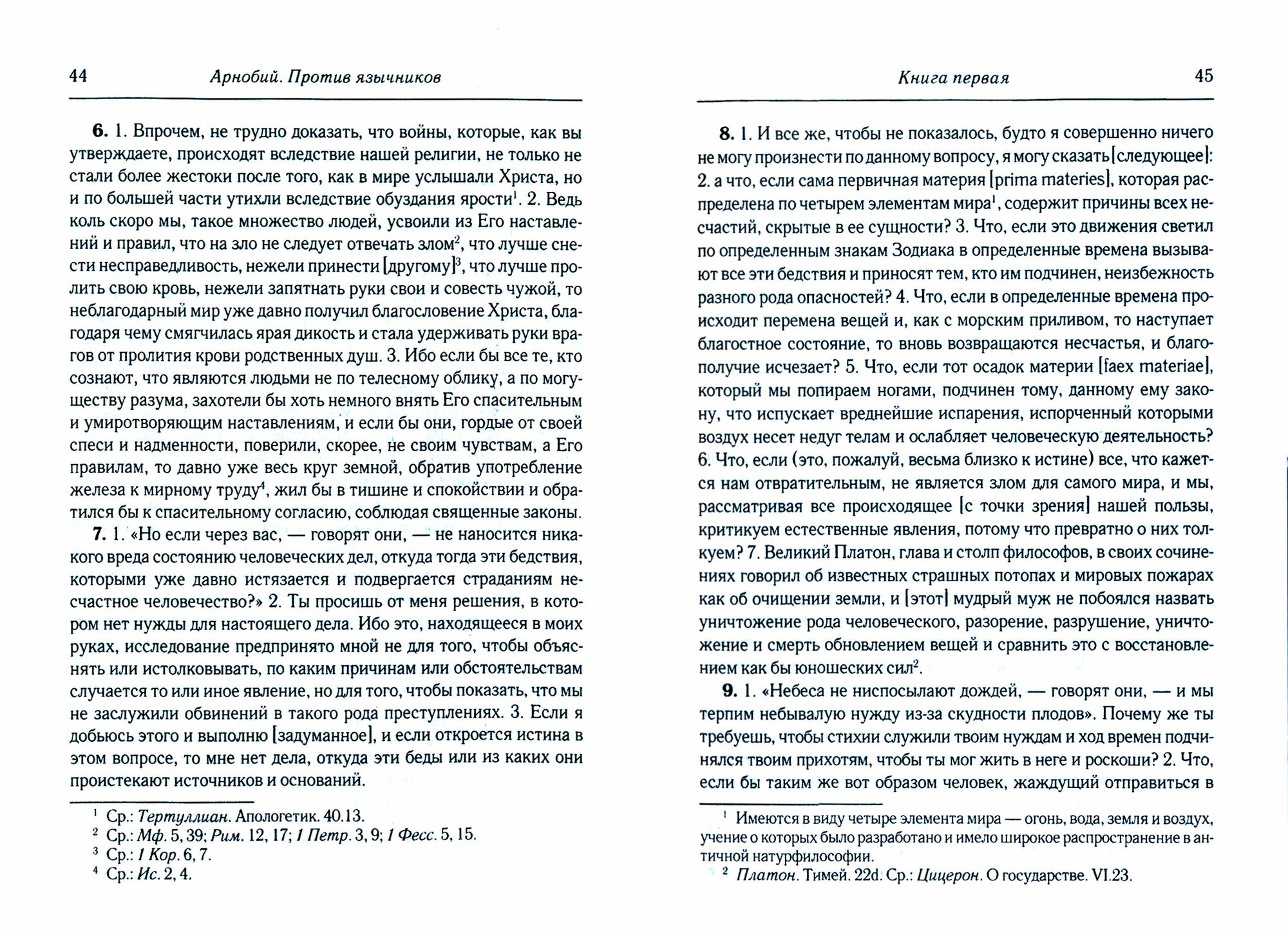Арнобий (Старший, или Африканец, ок. 330 г. н. э.) - знаменитый ритор в Нумидии (Северная Африка), один из самых замечательных и древнейших писателей Западной церкви. Его знаменитая апология "Против язычников" (Adversus nationes) в семи книгах, по словам блаж. Иеронима, была написана ок. 300 г., когда он сделался христианином, в форме вероисповедания крестившему его епископу. Апология в полной мере отражает сложную интеллектуальную и культурную атмосферу Римской империи времени перехода от язычества к христианству, с некоторыми особенностями мозаичной североафриканской культуры, в частности, в апологии явно прослеживаются неоплатонические и гностические идеи. Новый перевод этого труда сделан доктором исторических наук В. М. Тюленевым, уже известным своими переводами сочинений Лактанция и Павла Орозия, снабжен вступительной статьей, подробными комментариями и списком сокращений, учитывает главные достижения современной европейской и российской науки в области поздней античности, а также изменения, естественно происходящие в научной лексике.