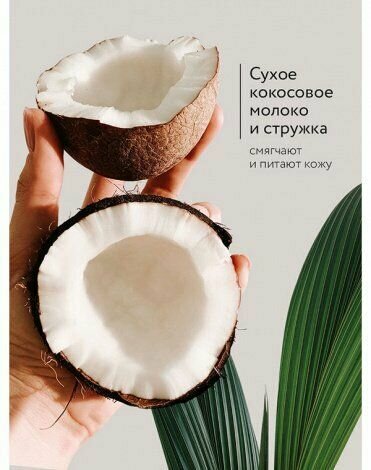 | Состав | Английская соль, морская соль, кокосовая стружка, сухое кокосовое молоко, масло сладкого миндаля, ниацинамид, D-пантенол |