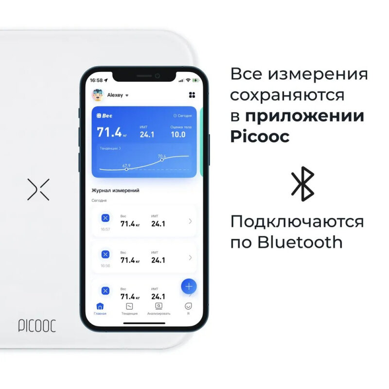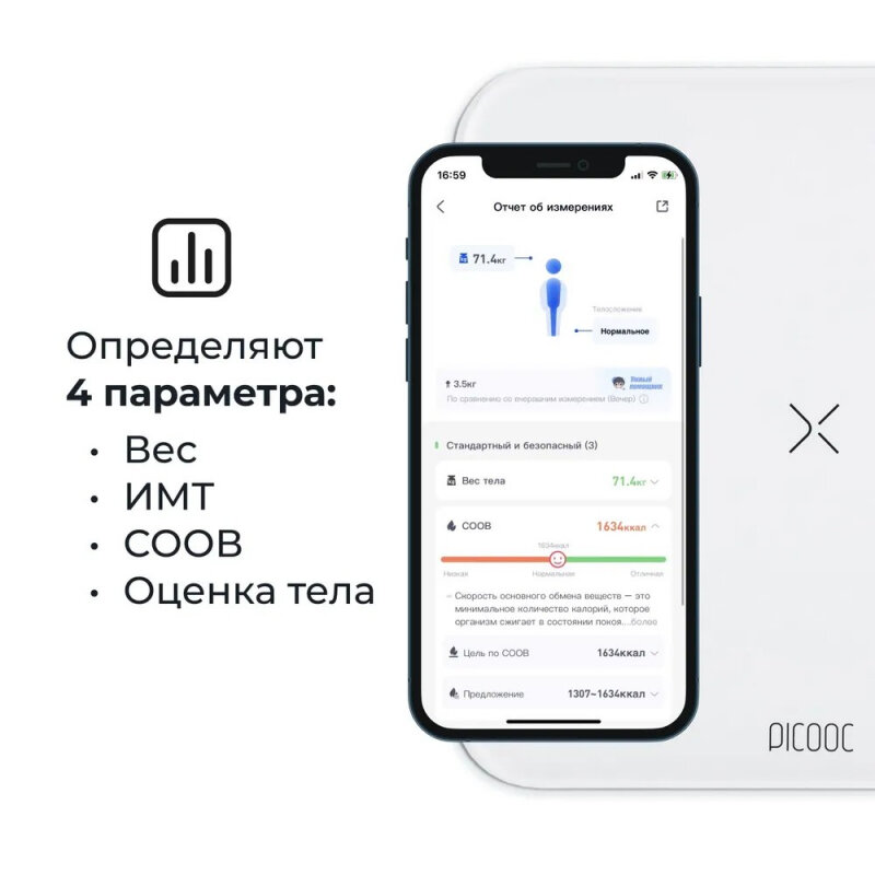 Picooc подойдут для знакомства с принципом работы умных весов. C их помощью следить на смартфоне за изменениями веса — легко и удобно. Они измеряют вес, индекс массы тела, скорость основного обмена веществ и дают оценку общего состояния тела. Все данные сохраняются в бесплатном приложении Picooc для Android и iOS и представлены в виде списков, графиков и в виде подробного отчета о каждом измерении.