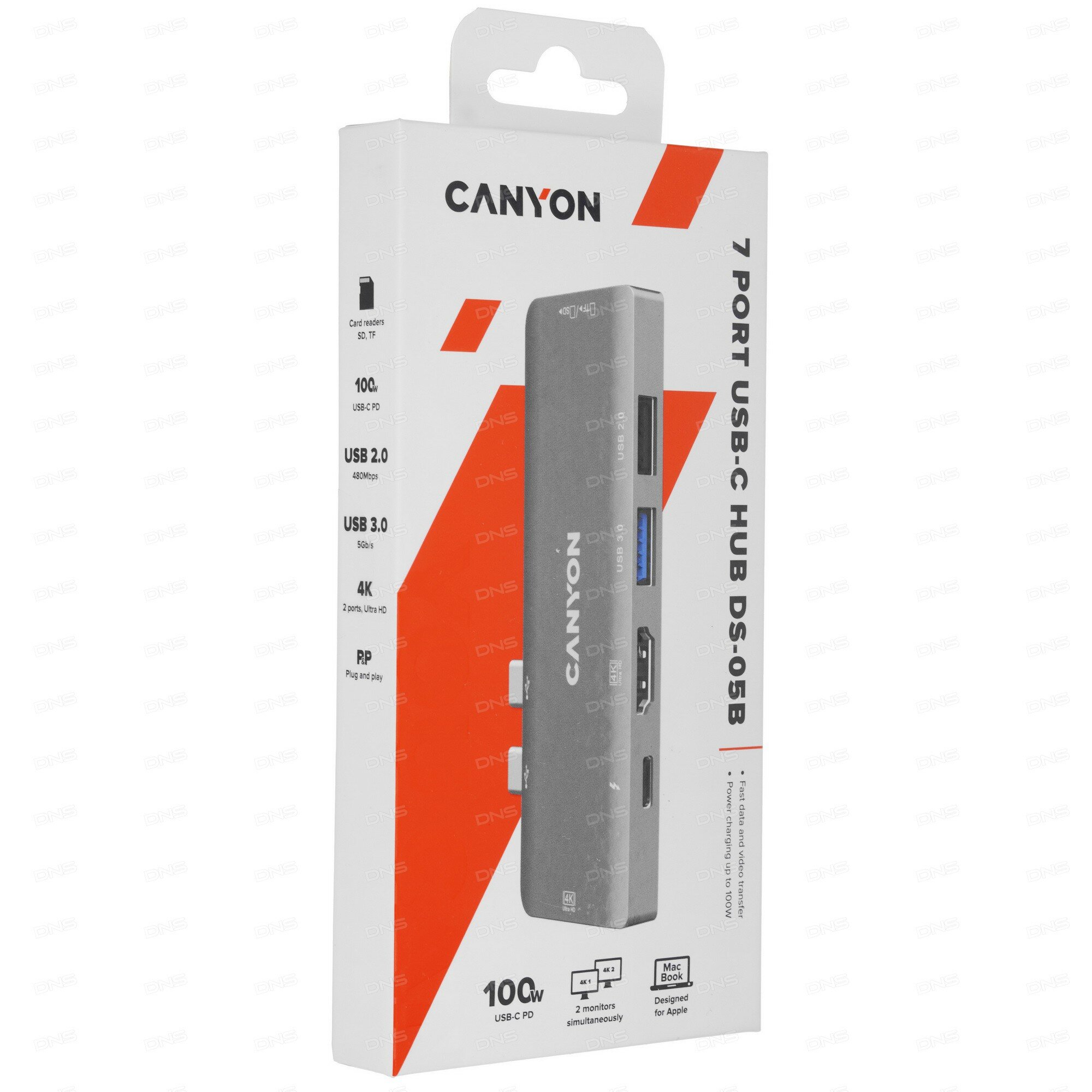 Док-станция Canyon CNS-TDS05B несмотря на компактные размеры, обладает большим набором разъемов. Устройство разработано для ноутбуков Apple, расширяя возможности даже самой простой модели. Док-станция подключается через USB-порт, не требует отдельного питания и может использоваться даже в автономном режиме MacBook.