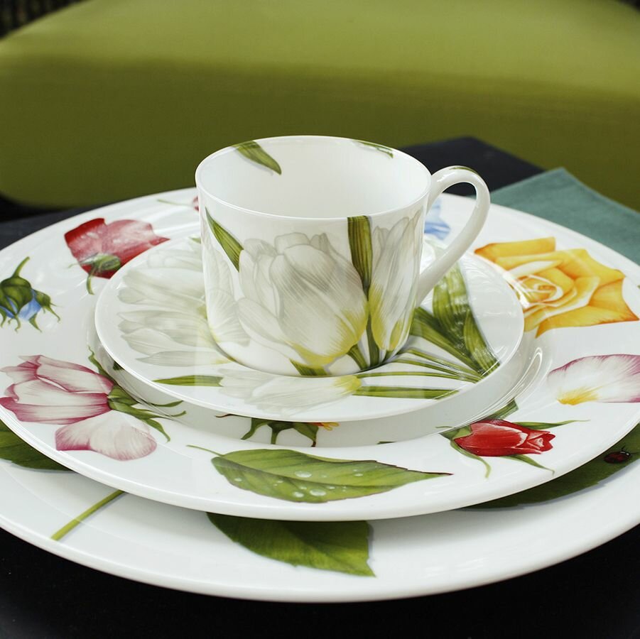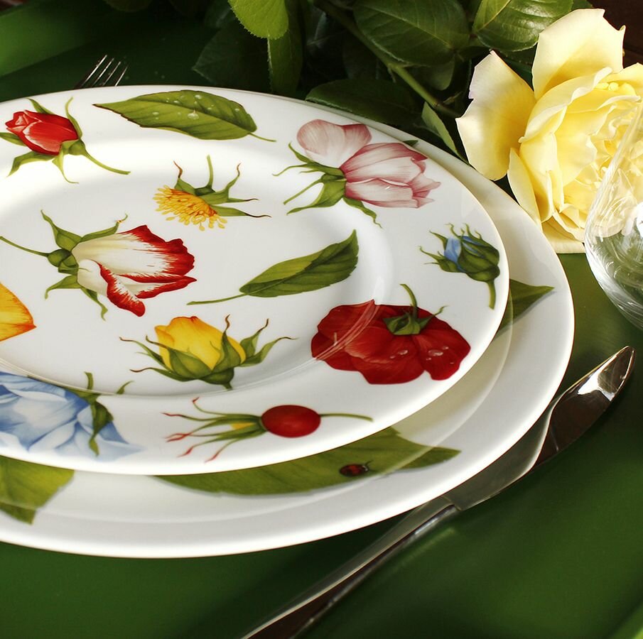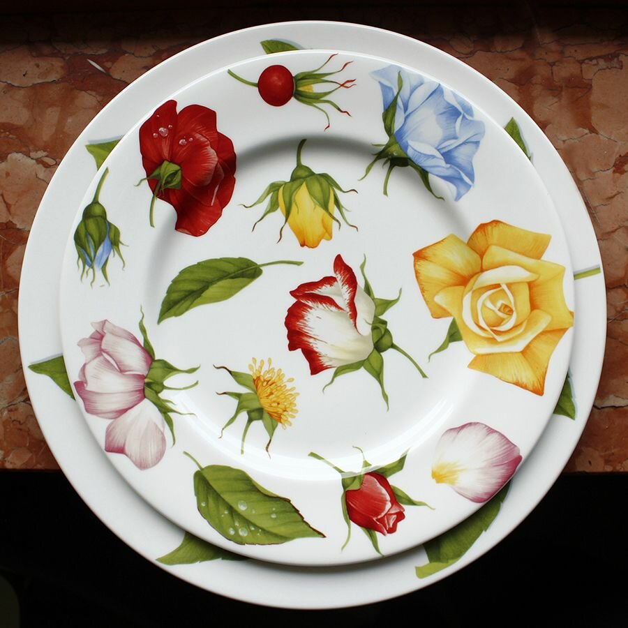 Компания Taitu основана в Милане 60 лет назад и является синонимом Цвета, Красоты и Свободы. Красоту изделиям Taitu придает широкое использование мельчайших декоративных элементов. Отличительная особенность фарфора Taitu заключается в том, что рисунки нанесены не только на внешнюю сторону изделия, но и на внутреннюю.Каждая деталь декора вырисовывается вручную. Тарелка обеденная, 27 см, ROMANTICA. Коллекция ROMANTICA представляет собой полноту весны, через цветок, который всегда ассоциировался с любовью и чистейшими чувствами. Розы от бутона до полностью раскрывшегося цветка с детальной прорисовкой всех мелочей.Классический декор становится современным благодаря макро-представлению - бутоны и розы из буйного цветения. Коллекция посуды безопасна для контакта с пищевыми продуктами. Можно использовать в микроволновой печи и посудомоечной машине.
