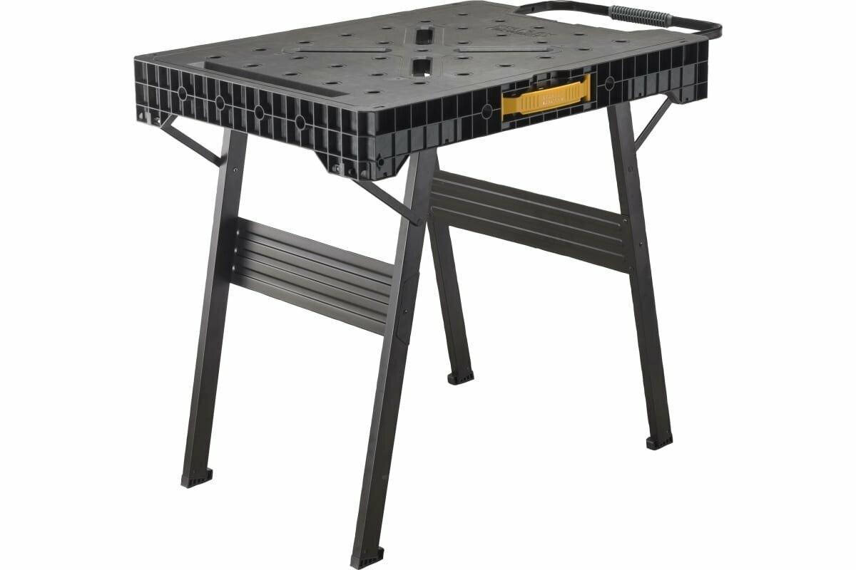 Верстак Stanley складной FATMAX с металлическими ножками, способен выдержать нагрузку до 455 кг.