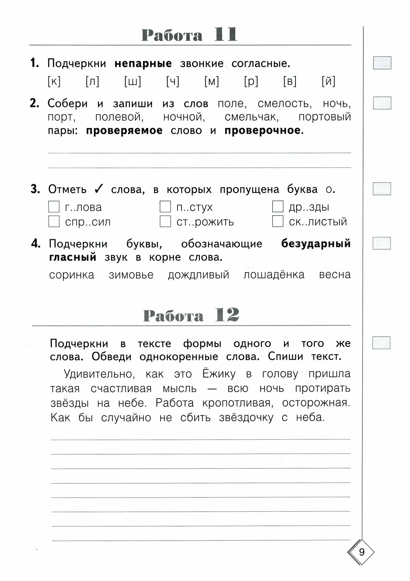 В конце тетради дана обучающая итоговая работа, близкая по структуре и типу заданий к требованиям Всероссийской проверочной работы по русскому языку за курс начальной школы и контрольно-измерительным материалам, представленным на сайте ФИПИ.