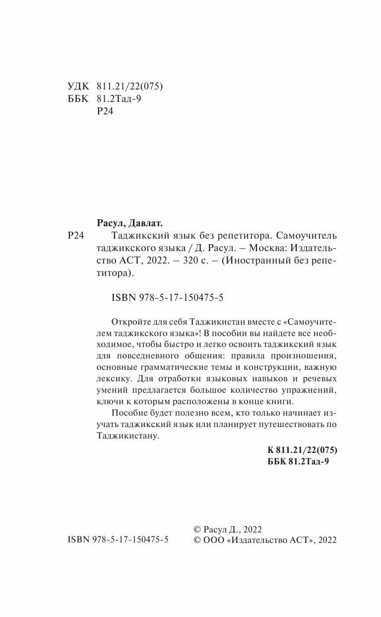 Таджикский язык без репетитора Самоучитель таджикского языка (Давлат Расул); Издательство АСТ, 2022