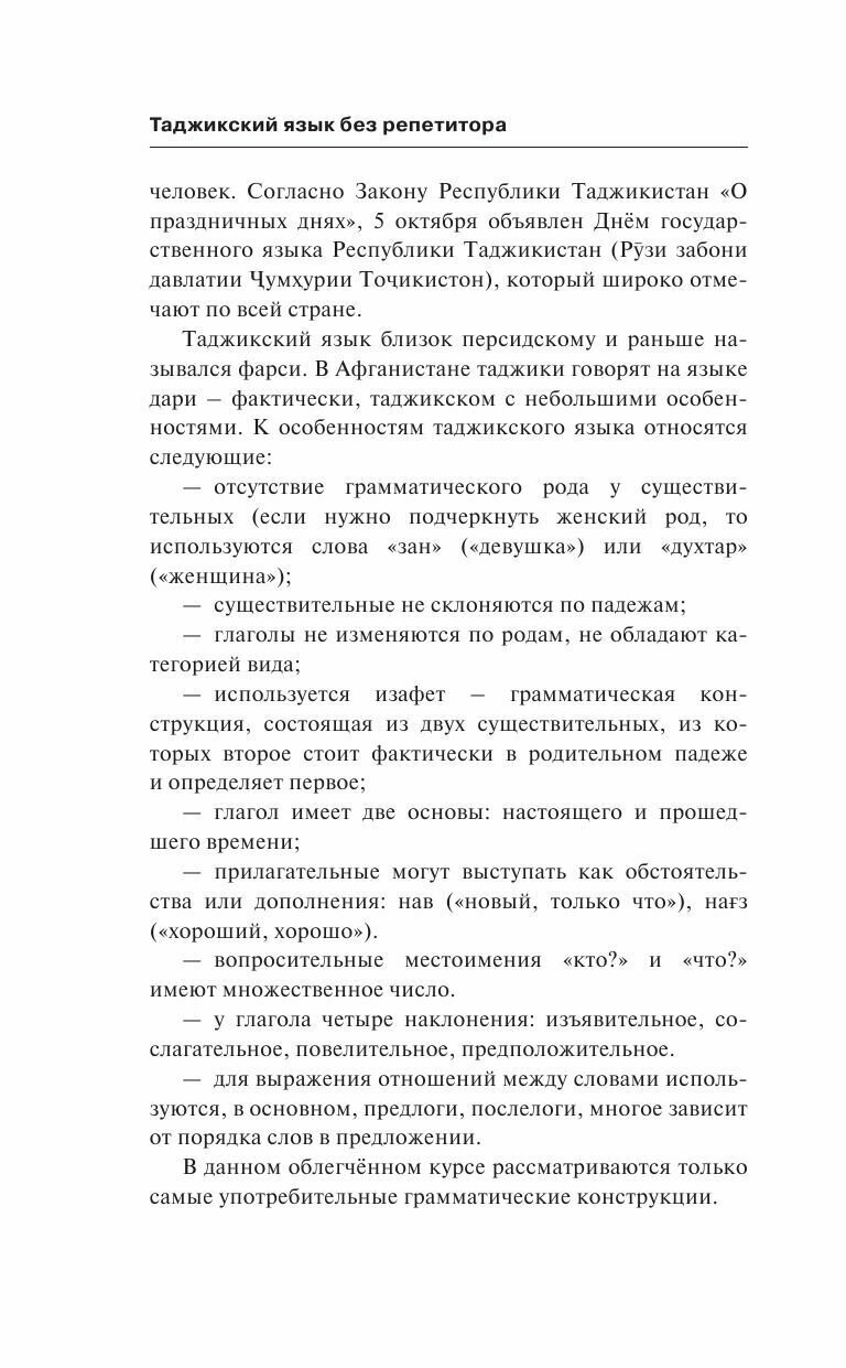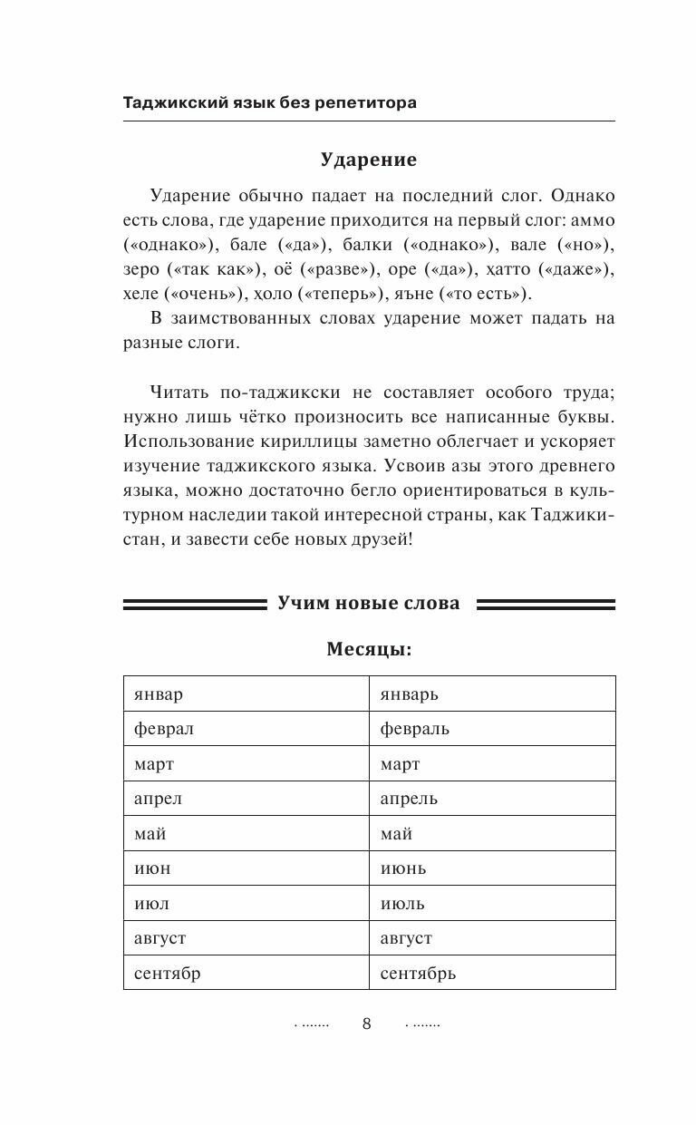 Пособие будет полезно всем, кто только начинает изучать таджикский язык или планирует путешествовать по Таджикистану.