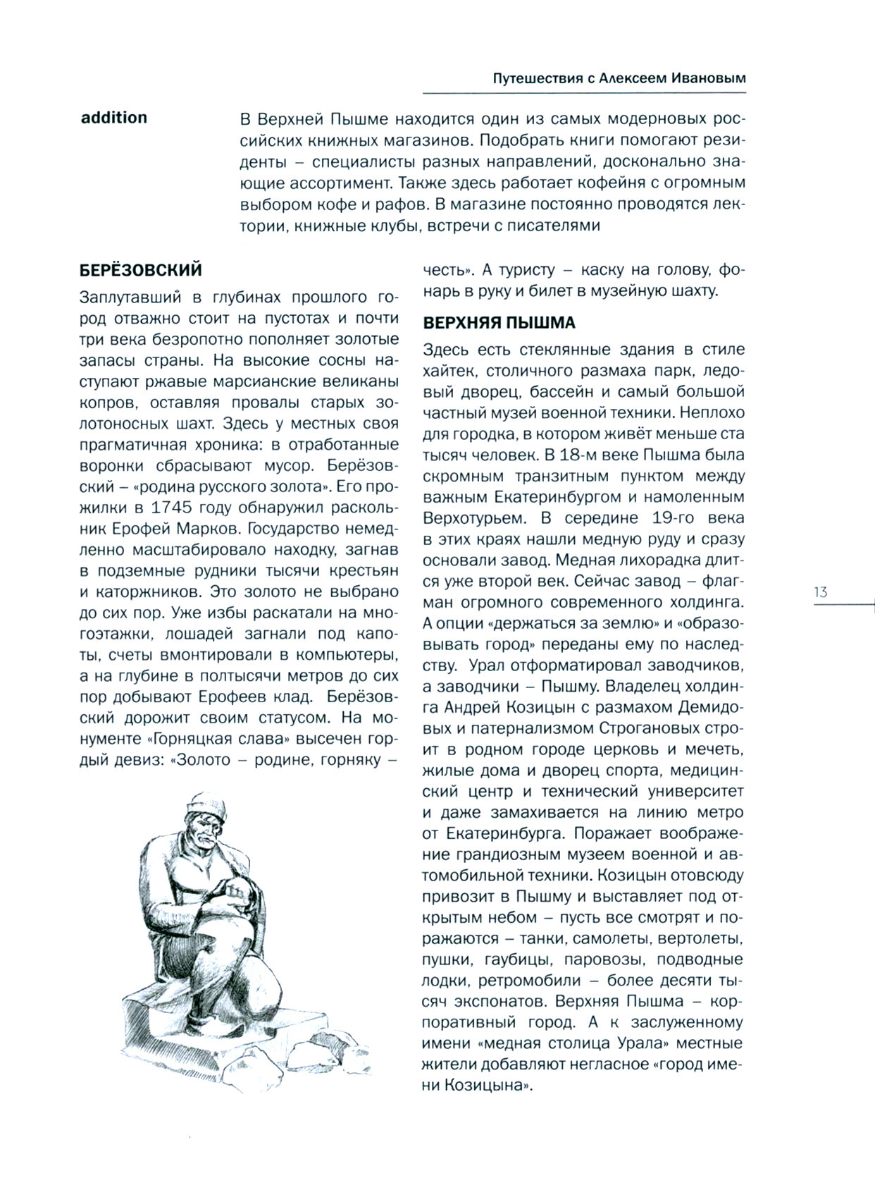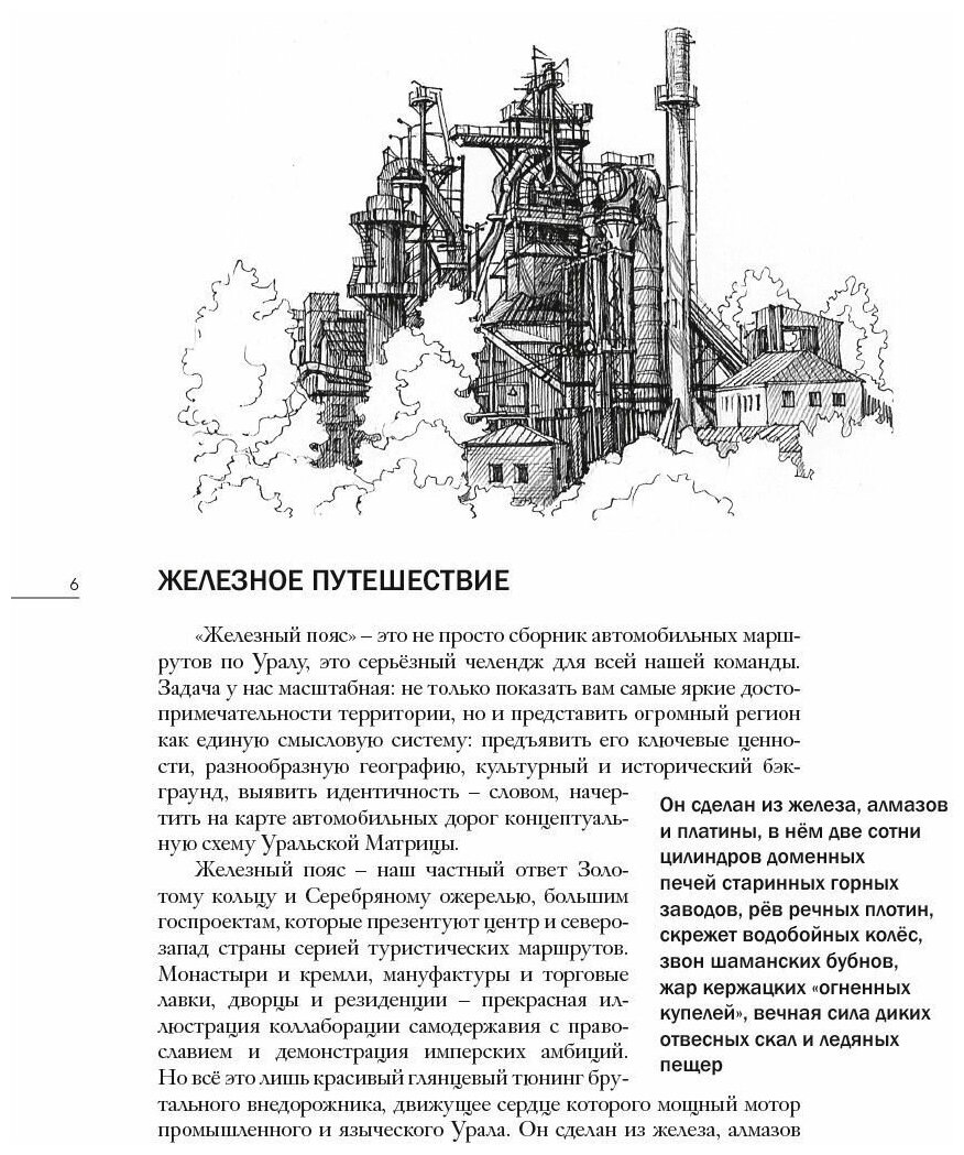 Четырнадцать автомобильных маршрутов, выверенная логистика, яркие образы городов и посёлков в текстах и авторских иллюстрациях — это ваш навигатор по Уральской цивилизации. А сталкер – Алексей Иванов, который в эссе «Уральская Матрица» прочертил основные стратегии для тех, кто, отправляясь на поиски приключений, самым ценным трофеем считает смыслы.