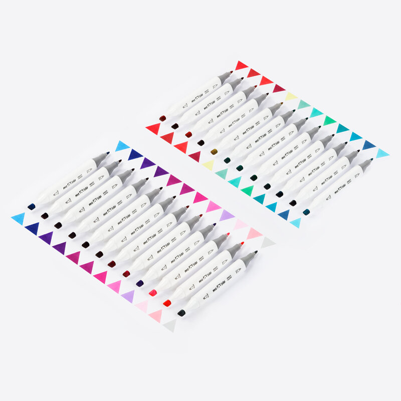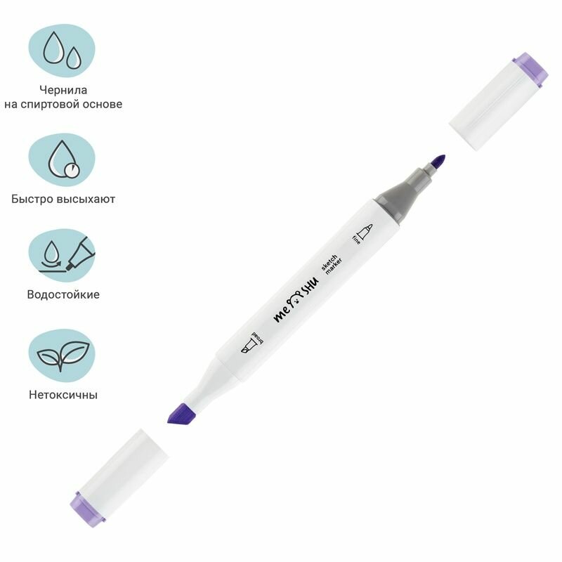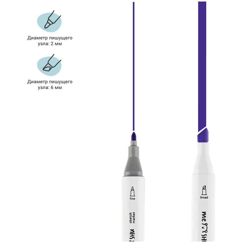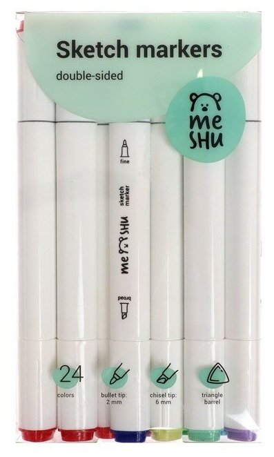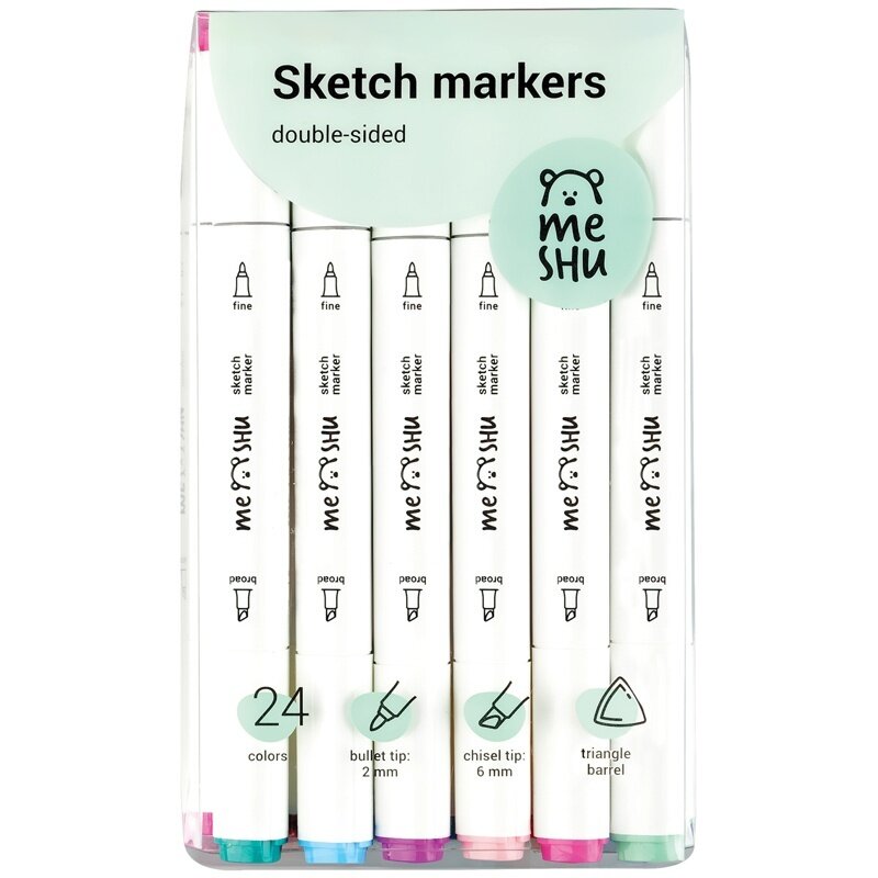 Набор двусторонних маркеров для скетчинга Meshu — идеальный выбор для художников, дизайнеров, иллюстраторов и любителей скетчинга, подходят для создания аниме и манги. Эргономичный трехгранный корпус удобно лежит в руке и позволяет эффективно прорабатывать мелкие детали рисунка. Чернила на спиртовой основе — быстро высыхают, водостойкие, нетоксичны и не портят поверхность бумаги. Маркеры обладают пулевидным (2мм.) и скошенным (6 мм.) наконечниками, что позволяет прорабатывать как мелкие детали рисунка, так и закрашивать большие области.