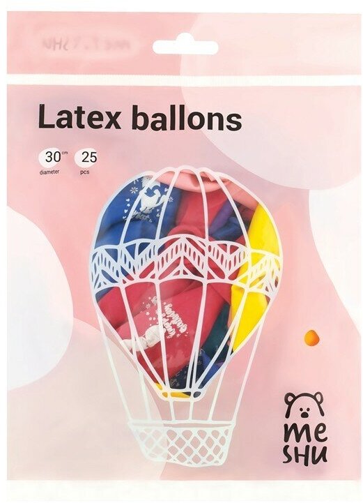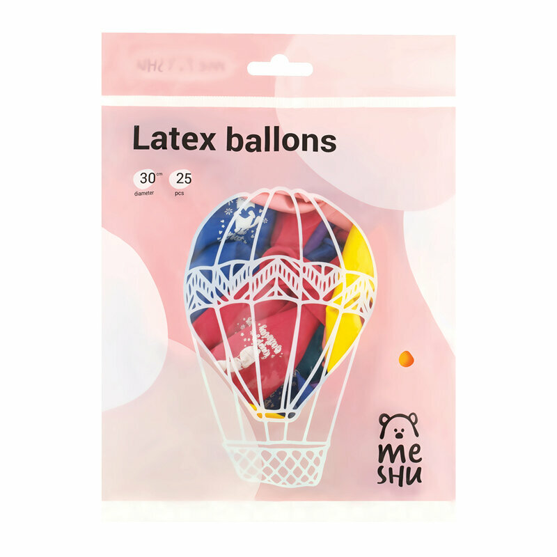 Набор воздушных шаров MESHU − потрясающий нарядный декор, который всегда будет ассоциироваться с праздничным настроем и нести позитивный заряд. В наборе представлены шары размером 30 см. Рисунок нанесен с одной стороны. Сделаны из натурального латекса без постороннего запаха. Рекомендуем надувать латексные шары размером не более 30 см.