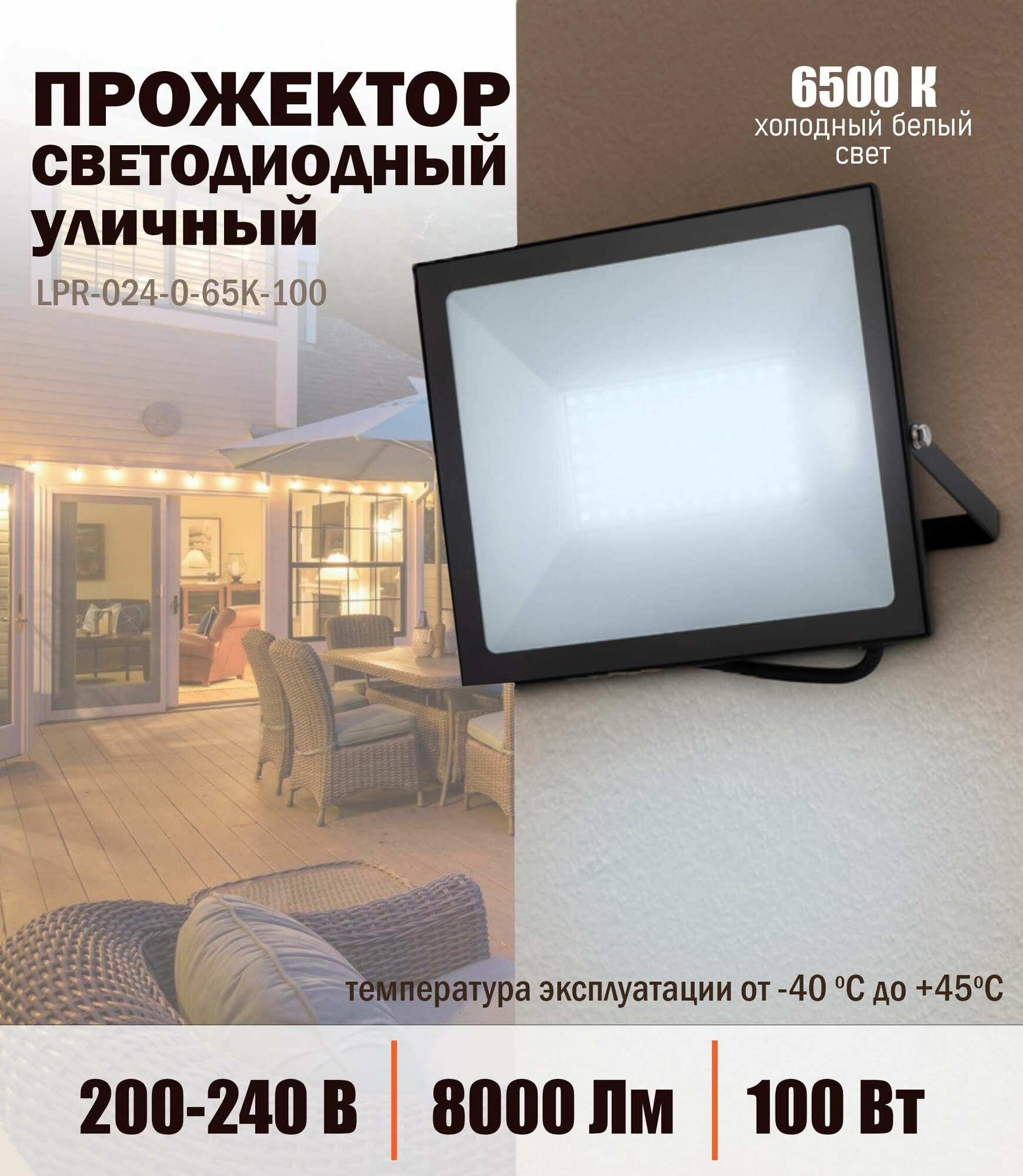 Прожектор светодиодный уличный с высоким световым потоком. Корпус -черный, изготовлен из прочного алюминия, стекло закаленное. Экономичная LED-технология сократит до 90% затрат на электроэнергию. Прожектор устойчив к механическим воздействиям, защищен от дождя и пыли, работает при широком диапазоне температур (от -40 до +45). Отличается простой и быстрой установкой. Подходит как для внутреннего, так и для наружного применения.