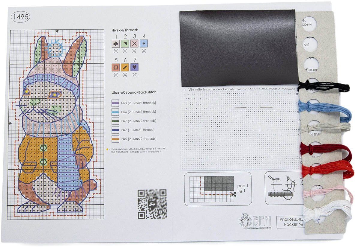 В наборе: пластиковая канва 14 ct, хлопковое мулине ПНК им. Кирова, магнитная основа, игла, схема, инструкция.