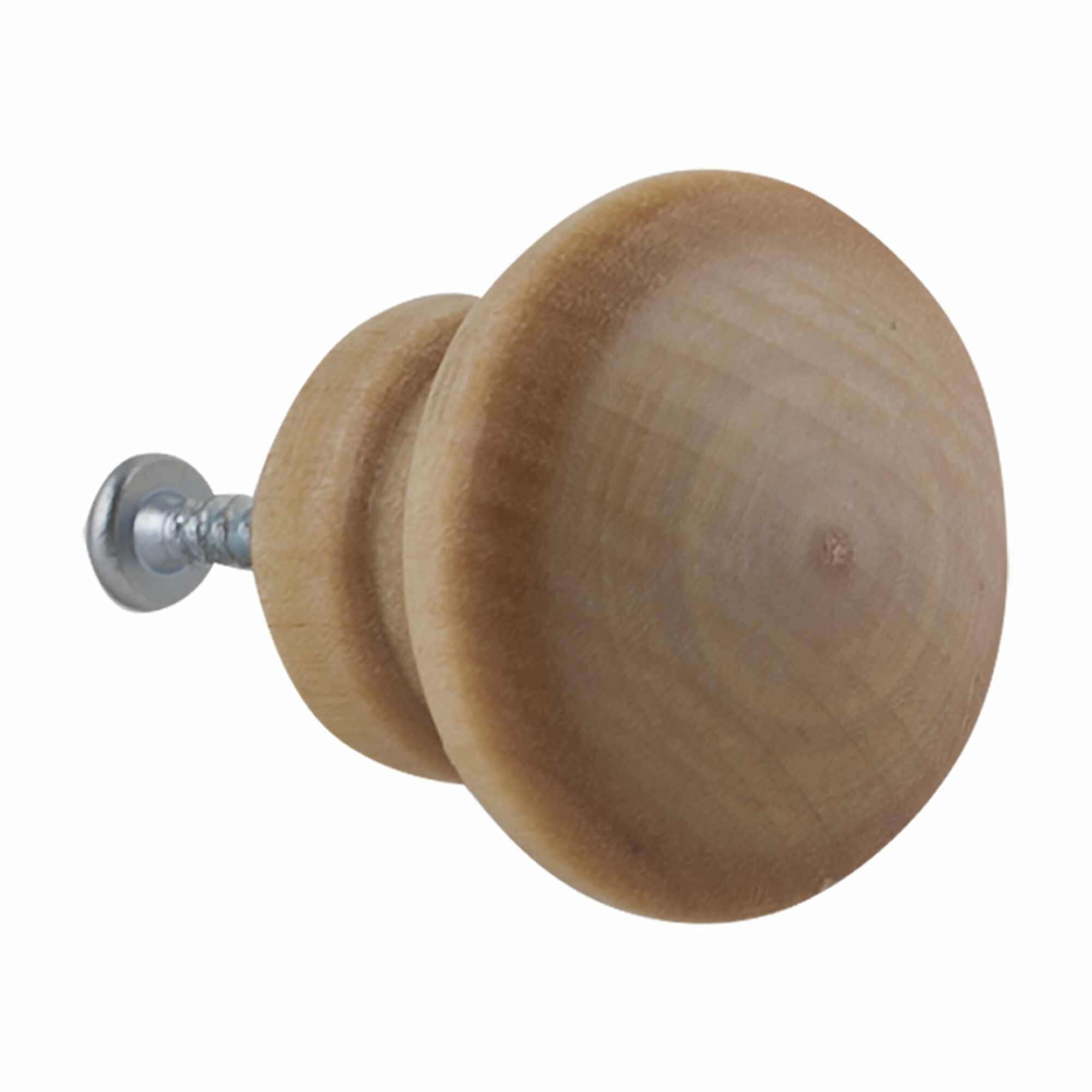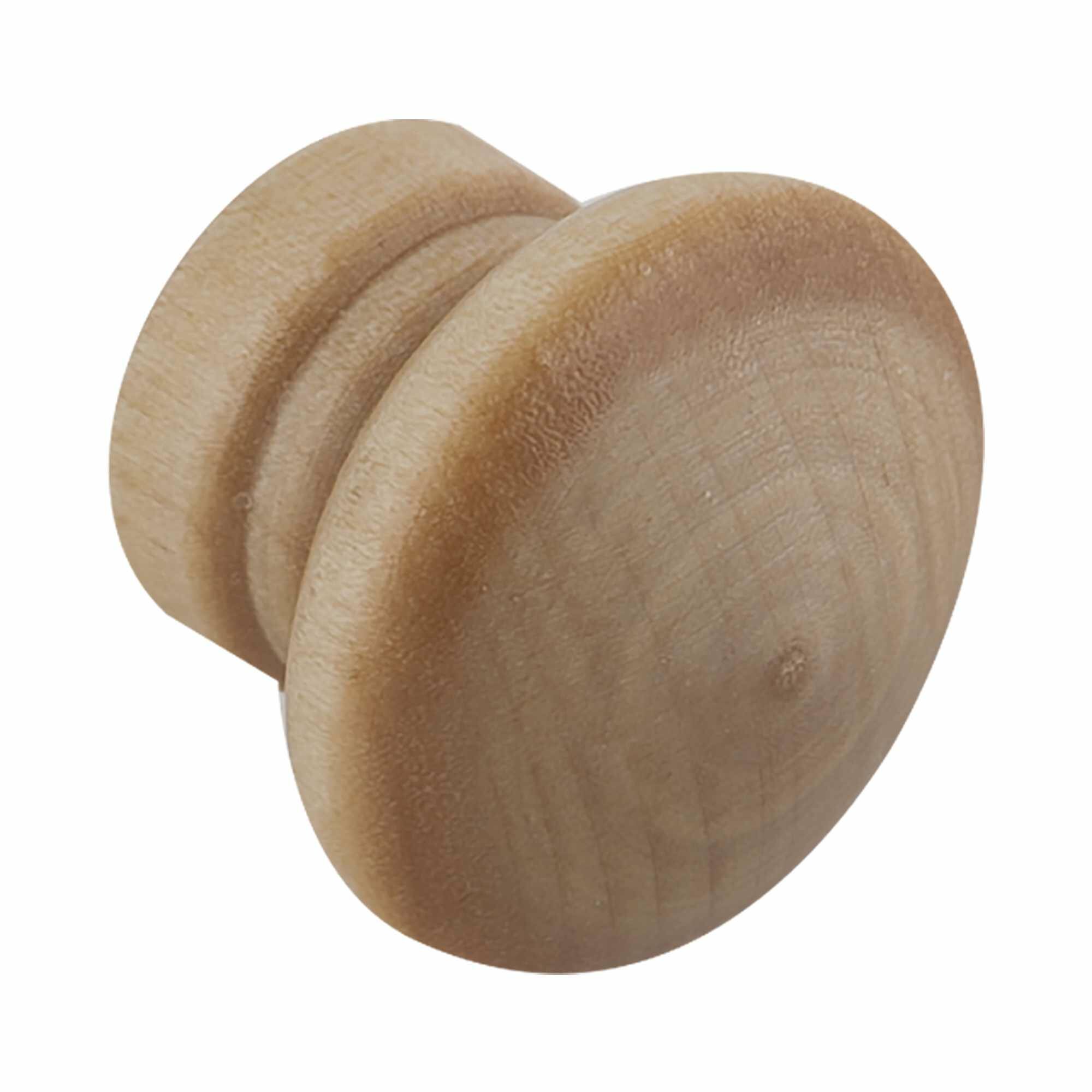 Ручка-кнопка – деталь лицевой мебельной фурнитуры. Она используется чаще всего на деревянных фасадах корпусной мебели в кухне, гостиной или спальне. Ручка имеет круглую форму, выполнена из массива бука, покрыта прозрачным матовым лаком. Она имеет красивый цвет натуральной древесины, не требует дополнительной отделки. Ручка крепится к мебельному фасаду с помощью одного шурупа.