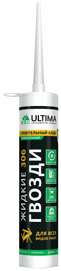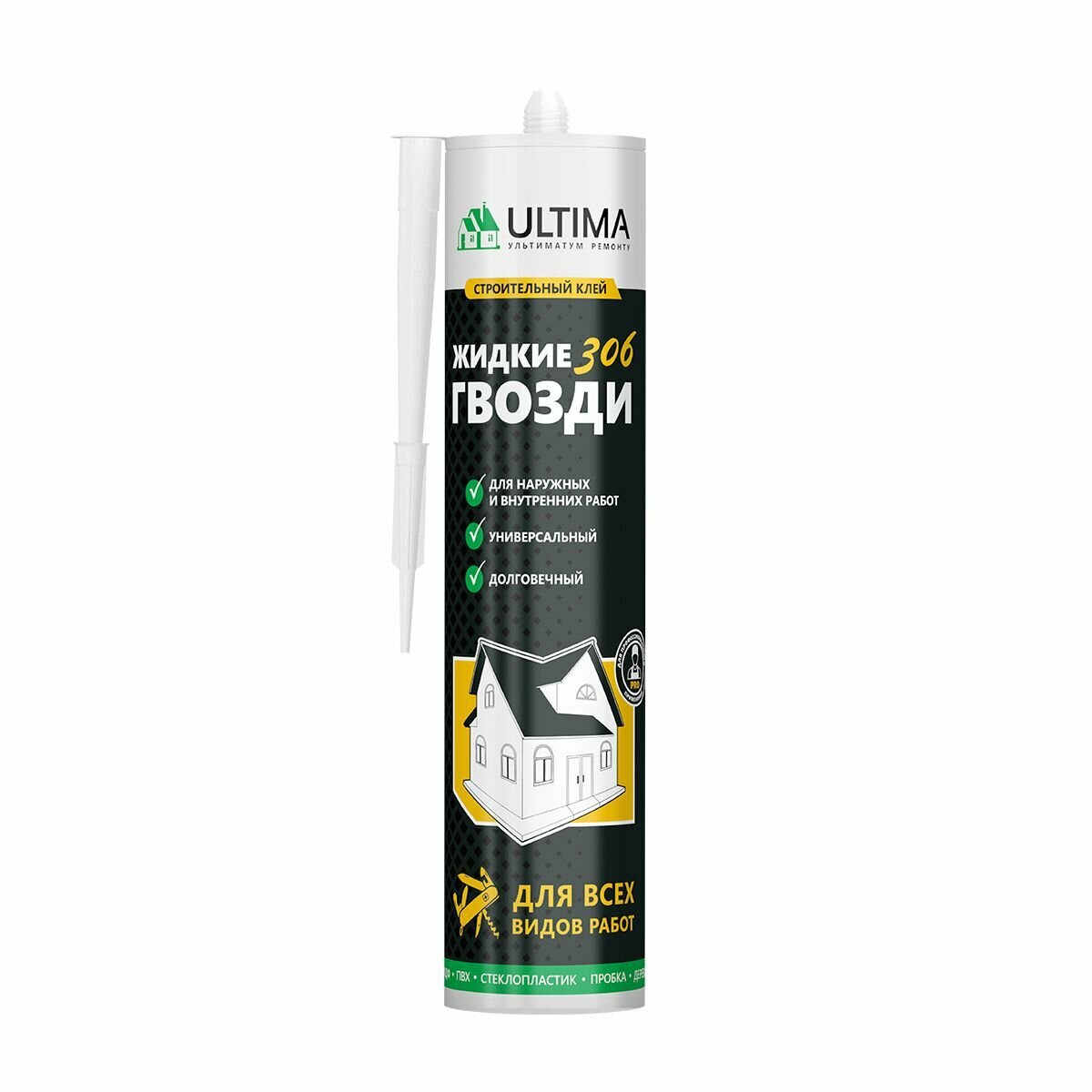 **Клей монтажный Ultima** изготовлен на основе синтетических каучуков. Предназначен для монтажных и отделочных работ любой сложности. Обладает высокими адгезивными свойствами, рекомендован для работы с разными поверхностями: камень, бетон, кирпич, ДСП, ПВХ, металл и т. д. Время полного высыхания при нанесении на сухую, очищенную от пыли и загрязнений поверхность — 3-5 мин.