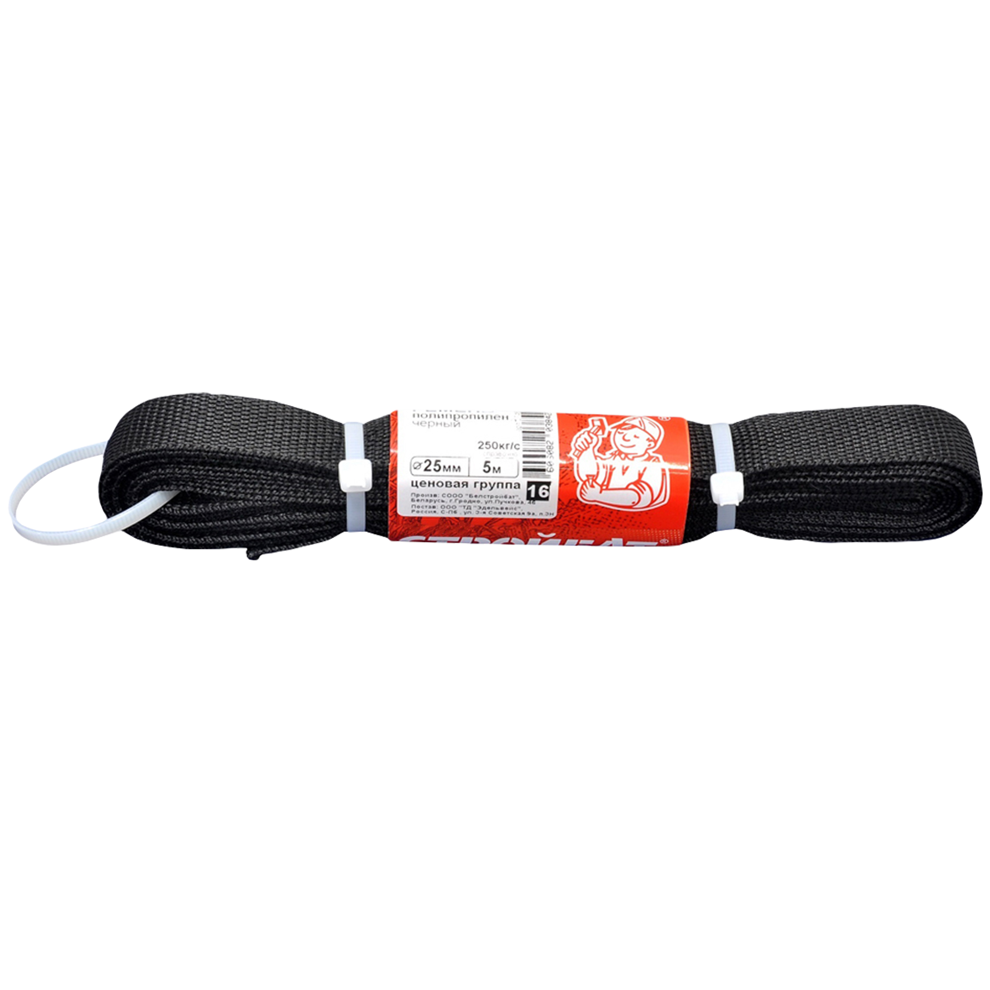 Ремень 25 мм 5 м полипропилен цвет черный Стройбат