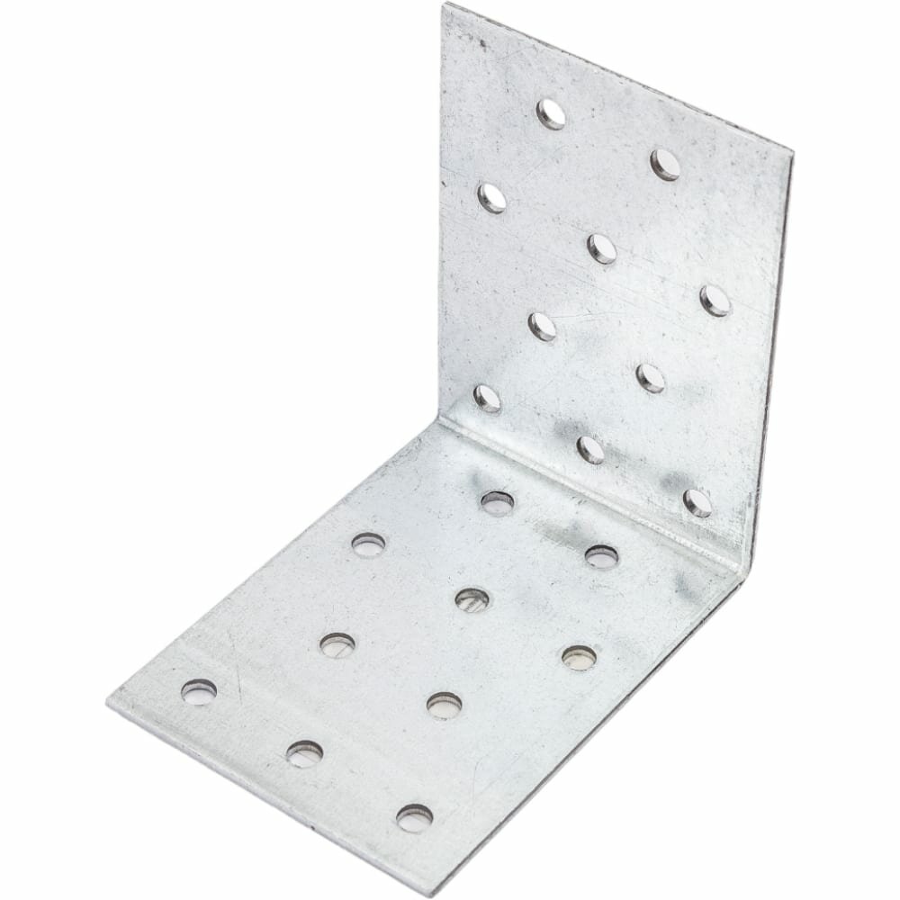 Уголок соединительный — металлическая пластина, согнутая под прямым углом. Полки (стороны угла) имеют одинаковую длину. По полкам равномерно распределены круглые отверстия одинакового диаметра под гвозди или шурупы. Размер уголка 80x80x60 мм, толщина — 1,8 мм. Изделие производится в России.
