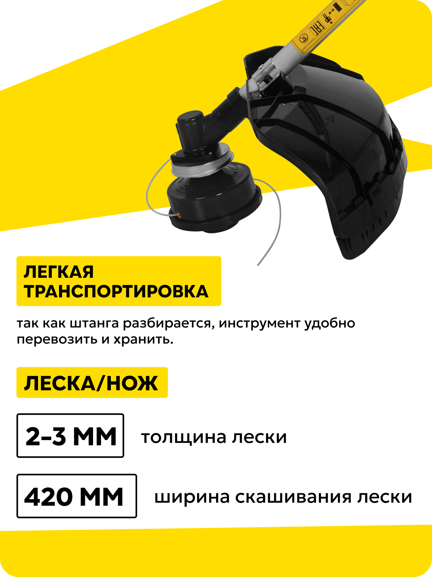 | Ширина скашивания для лески | 420 |