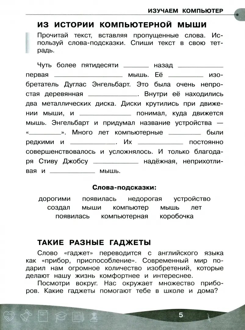 В пособии продолжена начатая в 3 классе тема работы с информацией. Большое внимание уделяется работе с информацией в цифровой форме. Пособие научит искать в Интернете и создавать самостоятельно подходящие иллюстрации для презентации, познакомит с понятием авторского права, расскажет учащимся, как преобразовать информацию из одной формы в другую - из текста доклада в презентацию, а также подскажет, как создать собственный мультфильм.