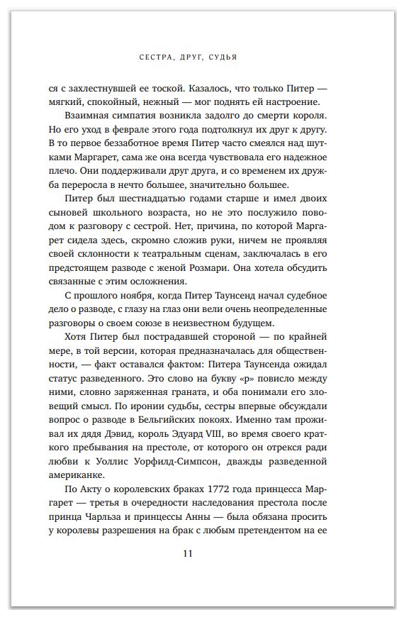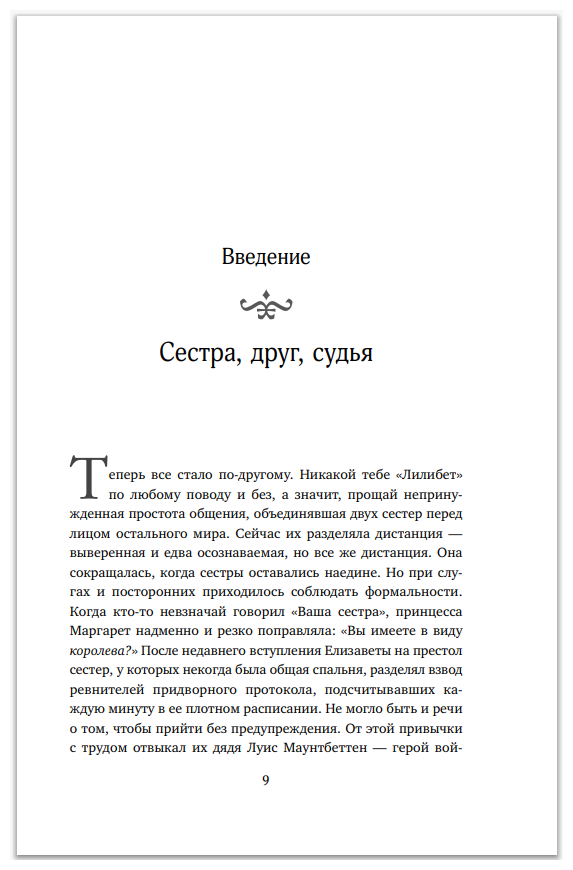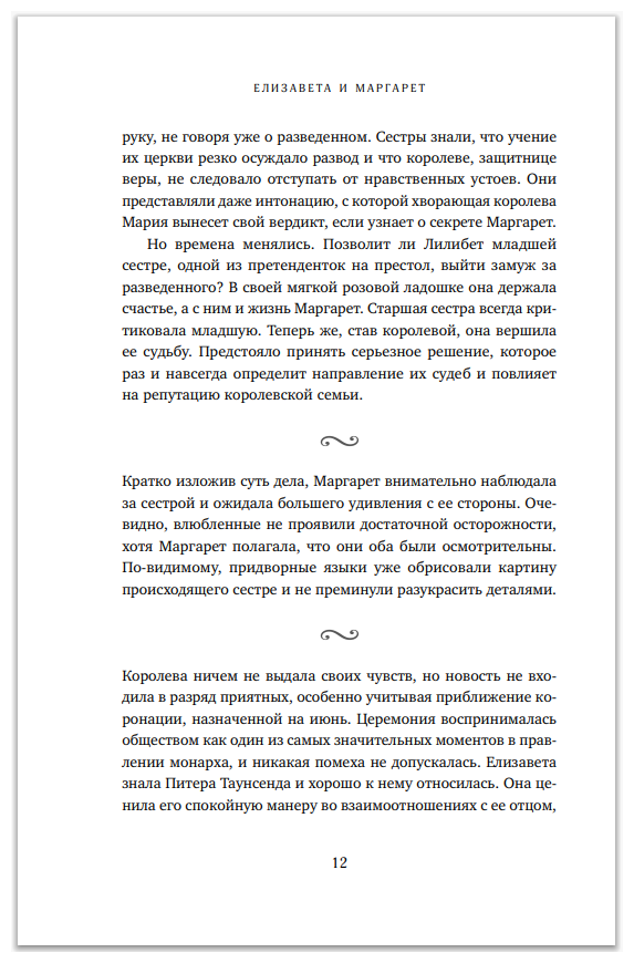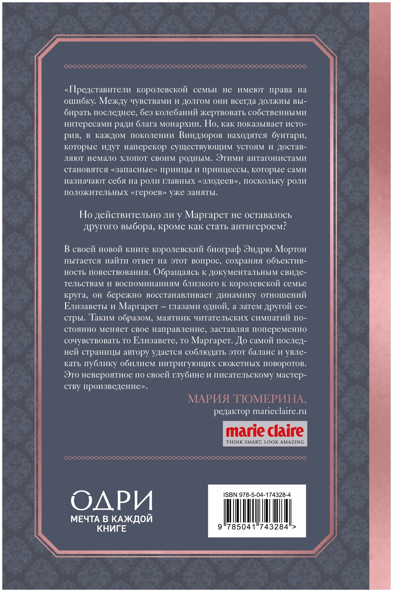 "В своей новой книге королевский биограф Эндрю Мортон пытается найти ответ на этот вопрос, сохраняя объективность повествования. Обращаясь к документальным свидетельствам и воспоминаниям близкого к королевской семье круга, он бережно восстанавливает динамику отношений Елизаветы и Маргарет - глазами одной, а затем другой сестры. Таким образом, маятник читательских симпатий постоянно меняет свое направление, заставляя попеременно сочувствовать то Елизавете, то Маргарет. До самой последней страницы автору удается соблюдать этот баланс и увлекать публику обилием интригующих сюжетных поворотов. Это невероятное по своей глубине и писательскому мастерству произведение". - Мария Тюмерина