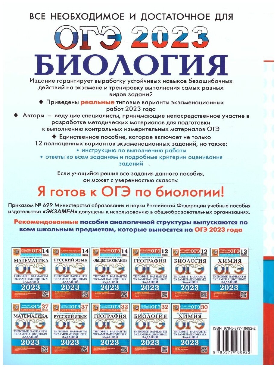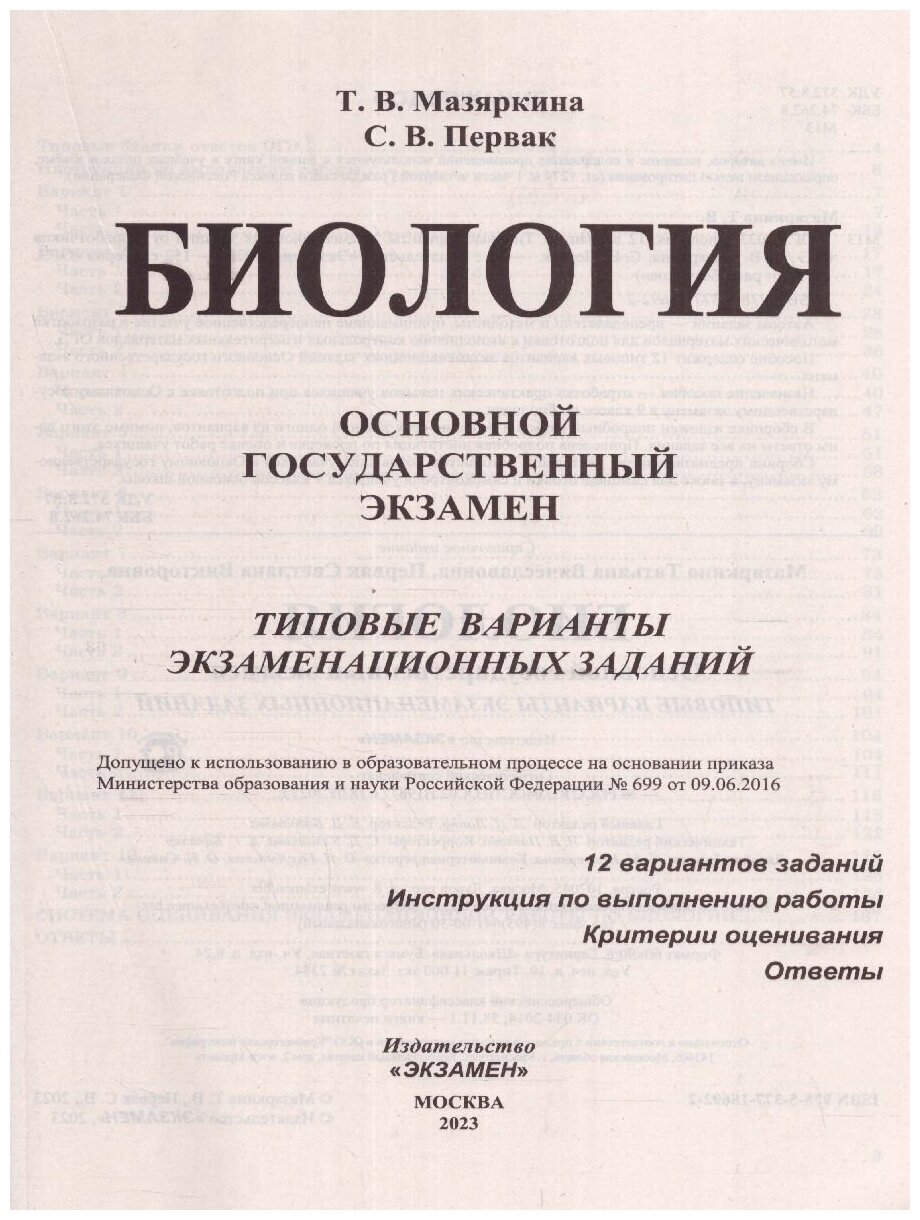 ОГЭ 2023 Биология 12 вариантов Типовые варианты экзаменационных заданий от разработчиков ОГЭ К новой официальной демонстрационной версии (Мазяркина Татьяна Вячеславовна, Первак Светлана Викторовна (соавтор)); Экзамен, 2023