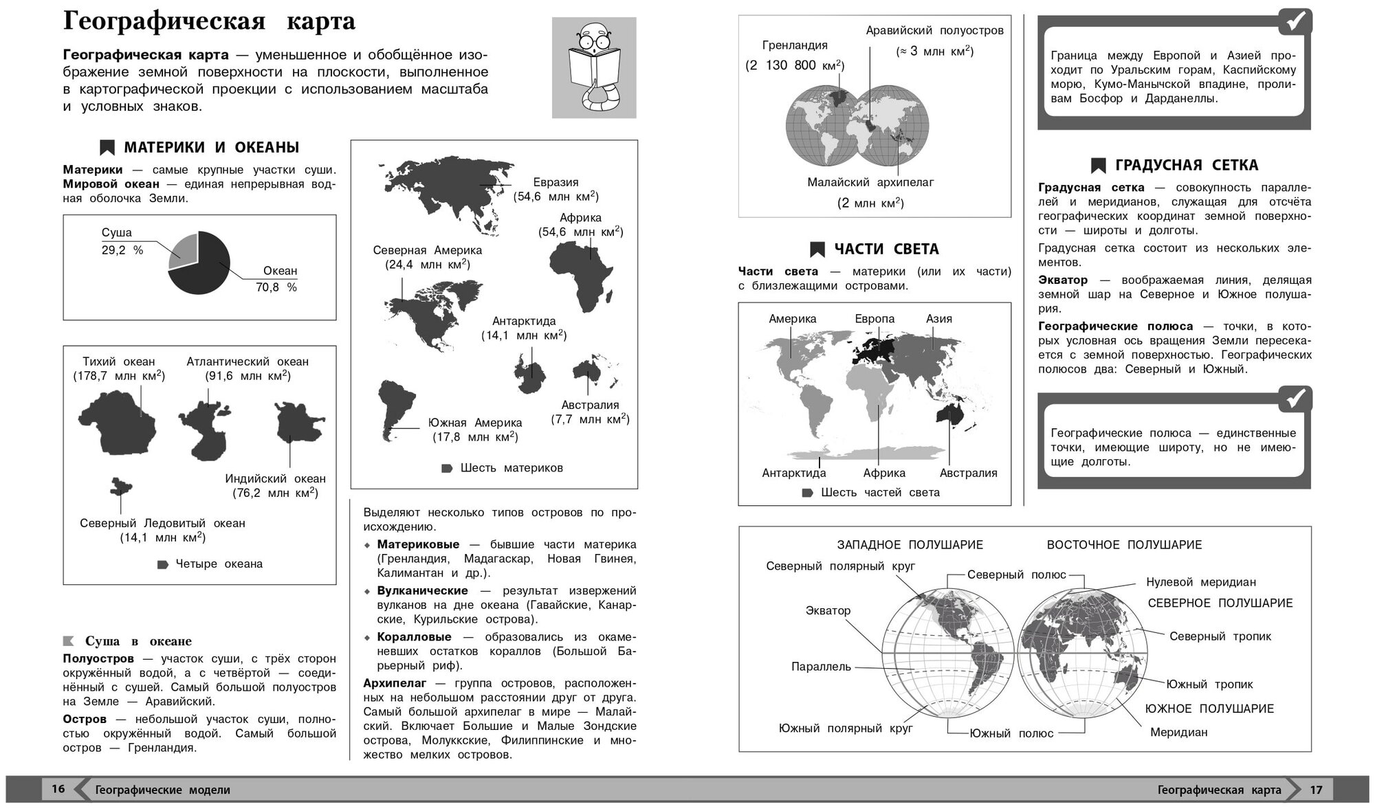 Благодаря справочнику школьники смогут эффективно подготовиться к ВПР и ОГЭ, учителя - организовать учебный процесс, а родители - освежить в памяти школьный курс по географии.