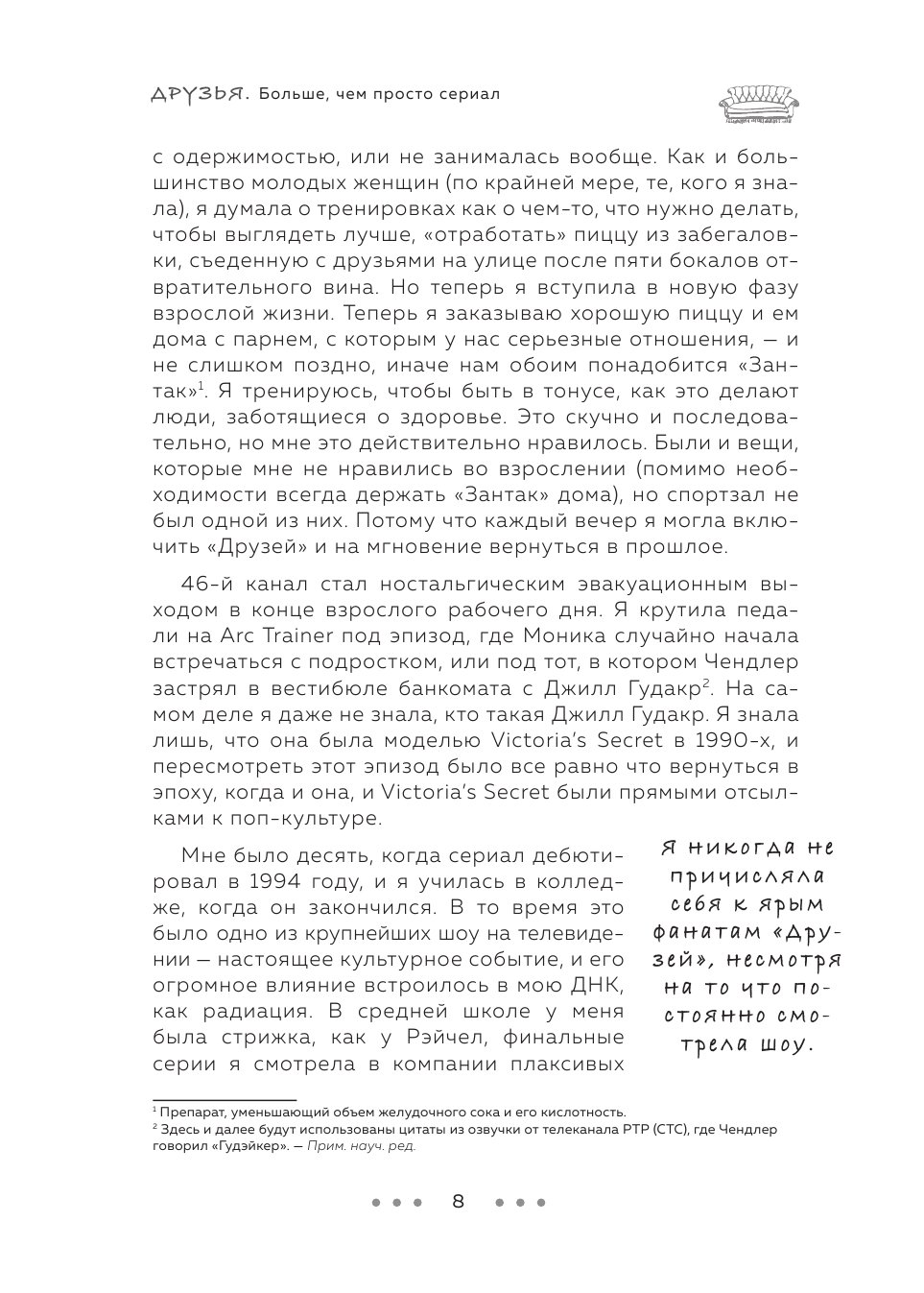 Какие-то факты вы уже знали, какие-то вам только предстоит узнать, но это путешествие в ностальгический мир "Друзей" однозначно стоит того. Отдайте дань уважения и любви той пустоте внутри каждого из нас, которую удалось заполнить "Друзьями", вместе с этой книгой!