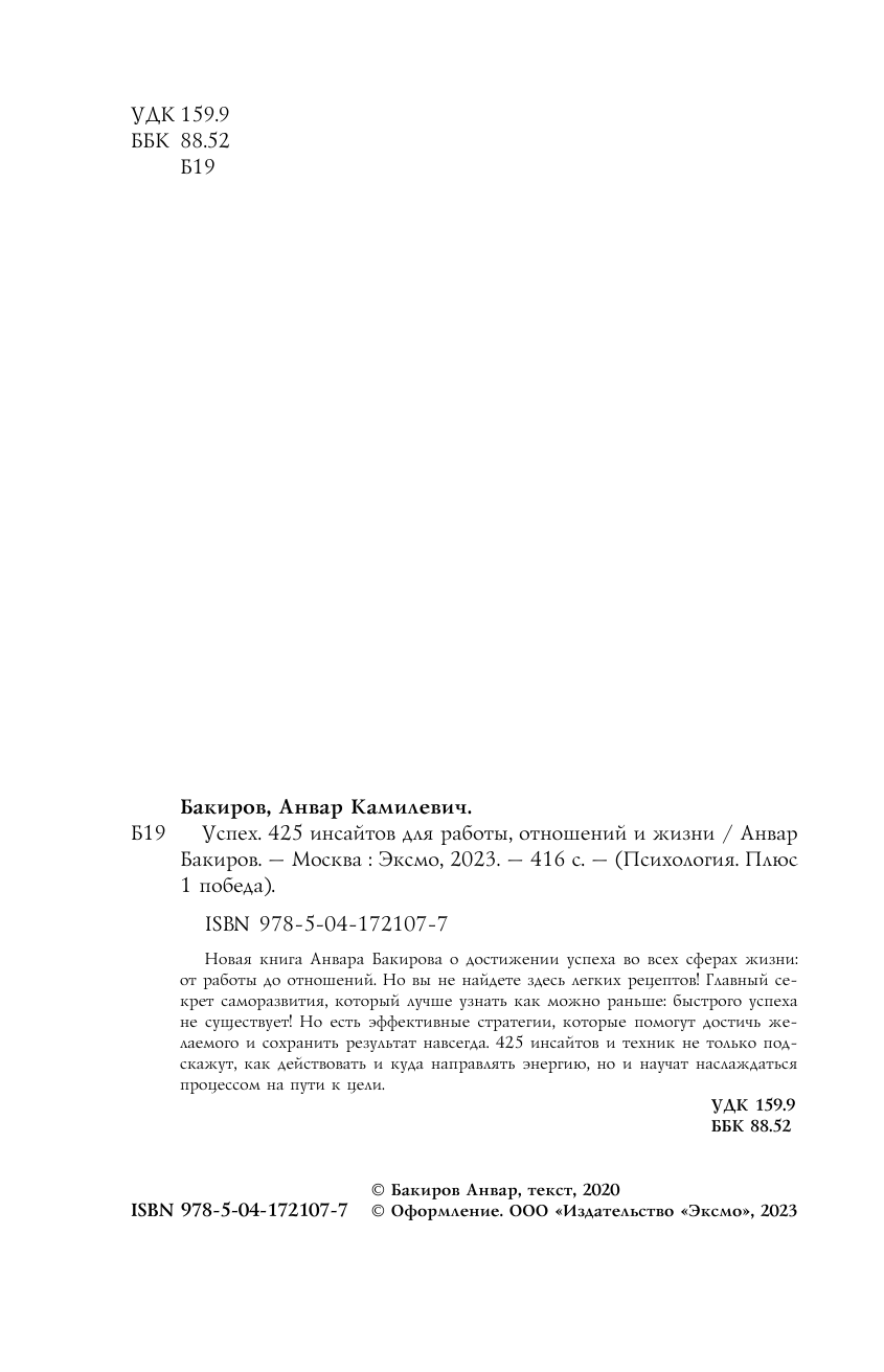 Успех. 425 инсайтов для работы отношений и жизни (Бакиров Анвар Камилевич); ООО "Издательство "Эксмо", 2022