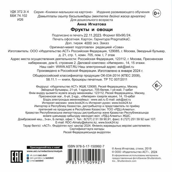 Сервис сравнения цен СкидкаГИД предлагает сравнить цены на товар «Книга: Фрукты и овощи (Игнатова Анна Сергеевна); Сова. Малыш (Обучающая и развивающая литература), 2022»