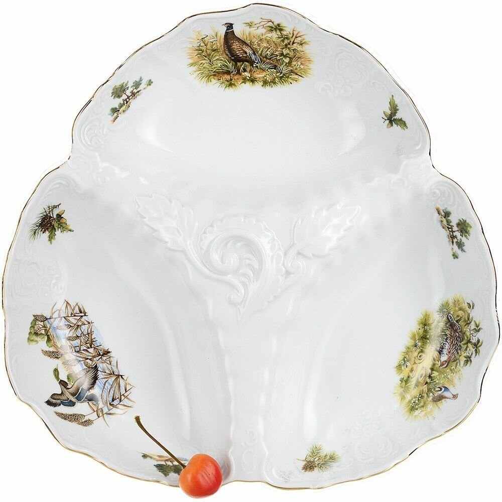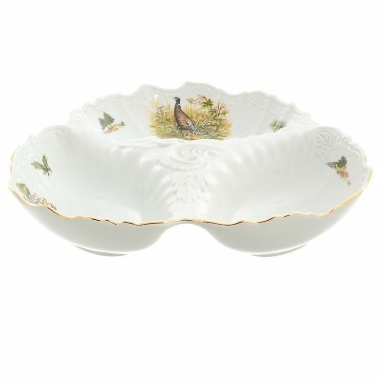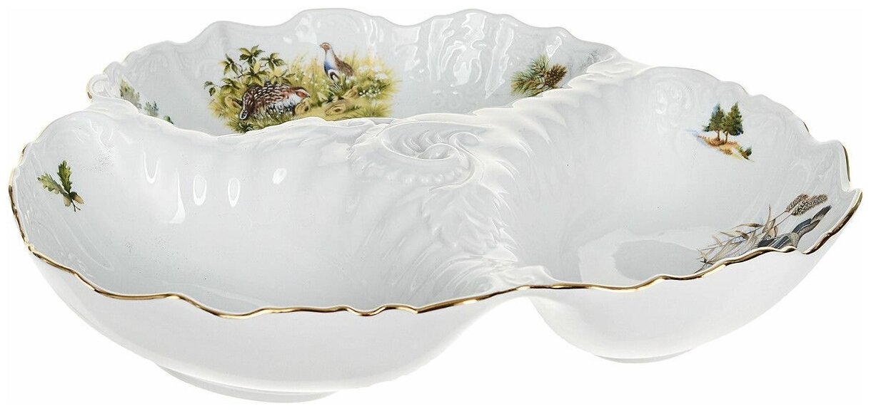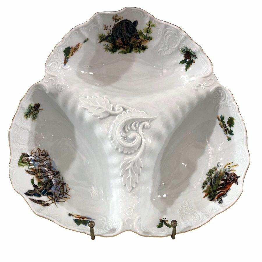 Блюдо для хлеба Bernadotte "Охотничьи сюжеты" 34 смБлюдо для хлеба "Bernadotte" (Бернадотт) охота 34 см, БТФ0068 от всемирно известного, крупнейшего Чешского производителя фарфора торговой марки Thun 1794 a.s. Блюдо для хлеба из фарфора будет прекрасным украшением вашего праздничного стола, а так же достойным подарком для ваших друзей, коллег, знакомых. Все изделия изготовлены на современном оборудовании, с использованием более чем двухвековых традиций старых мастеров. Высокое качество и уникальный дизайн изделий, сделали Предприятие "Thun" признанным мировым лидером в производстве посуды из высококачественного Чешского фарфора. Вся посуда из Чешского фарфора сертифицирована по Европейским и Российским стандартам.