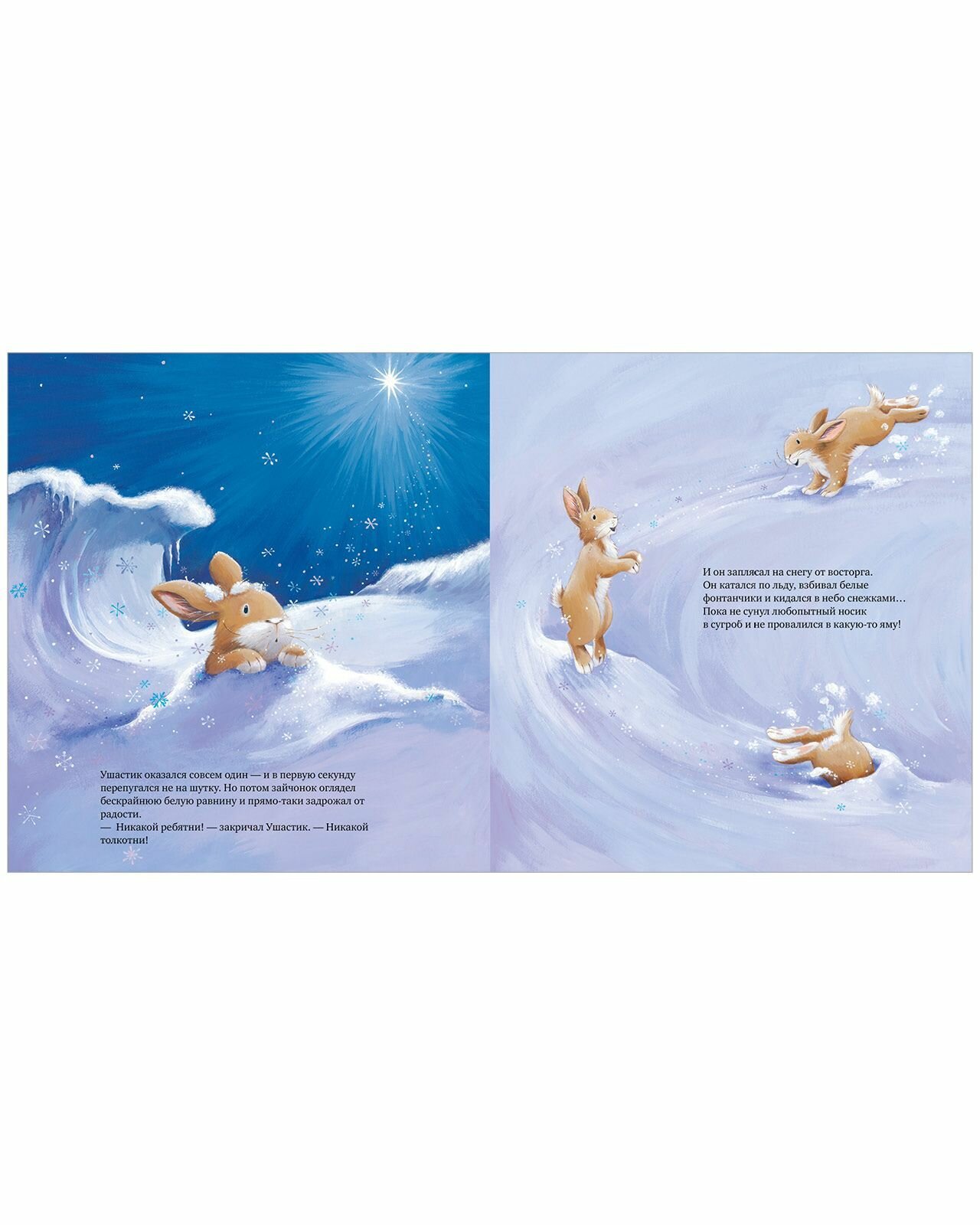 Бедный Ушастик никак не может уснуть — уж очень тесно в их норке. А сестрица Меховушка все норовит обнять брата покрепче. Ушастик решает сбежать из дома. Он встречает Альбатроса, который рассказывает ему о Дальнем Севере, где совсем ничего и никого нет, только звездное небо и снег. Ушастик отправляется в путешествие вместе с новым другом, но в дороге с ним приключается беда. Он остается совсем один среди снега и льда. Сможет ли зайчик выбраться из передряги и вернуться домой?