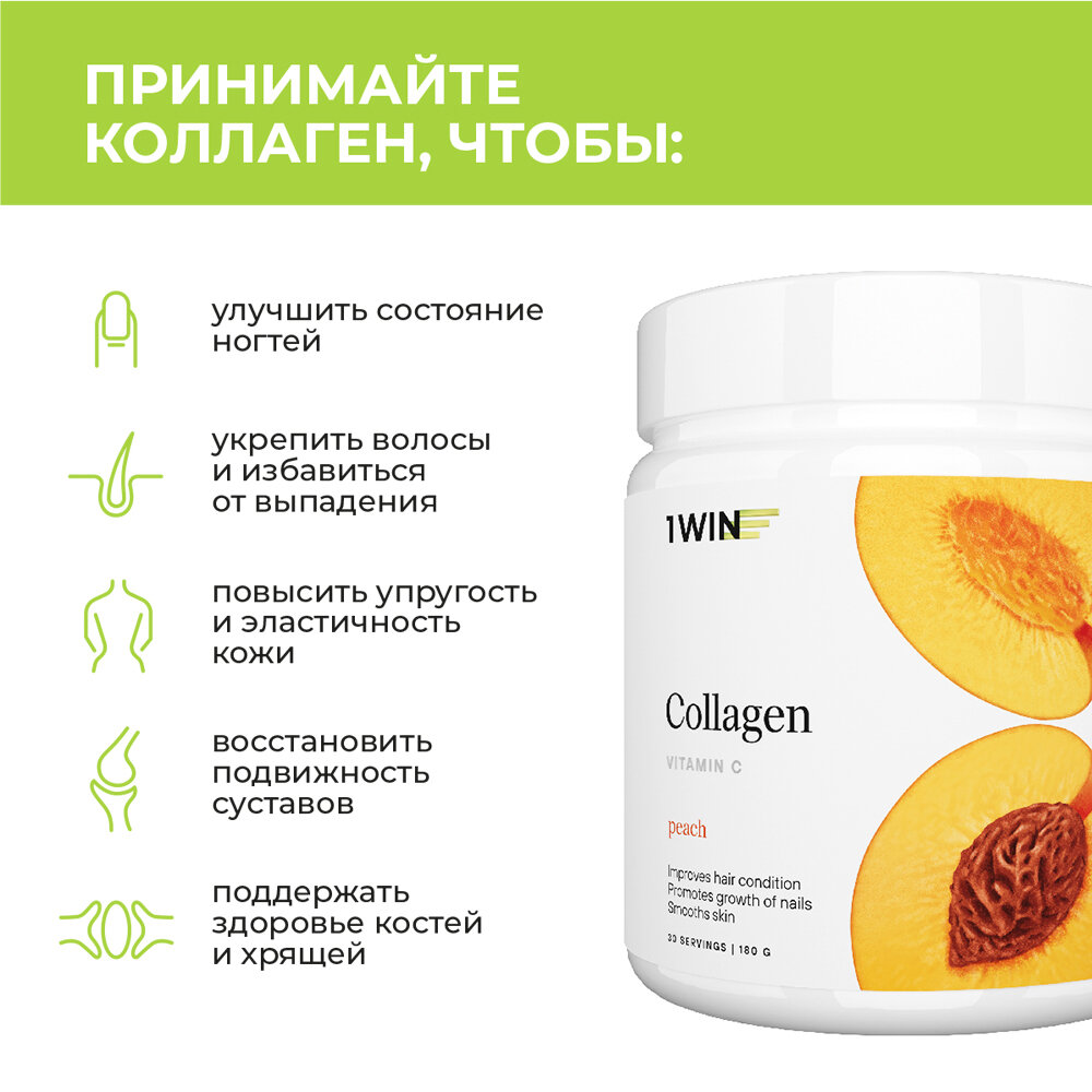 1WIN Комплекс "Коллаген с витамином С" со вкусом персика 30 порций 180 г (1WIN ) (ЭХ99989432223) (размер: Без размера)