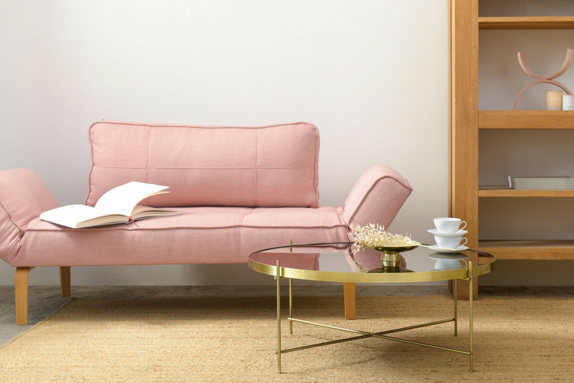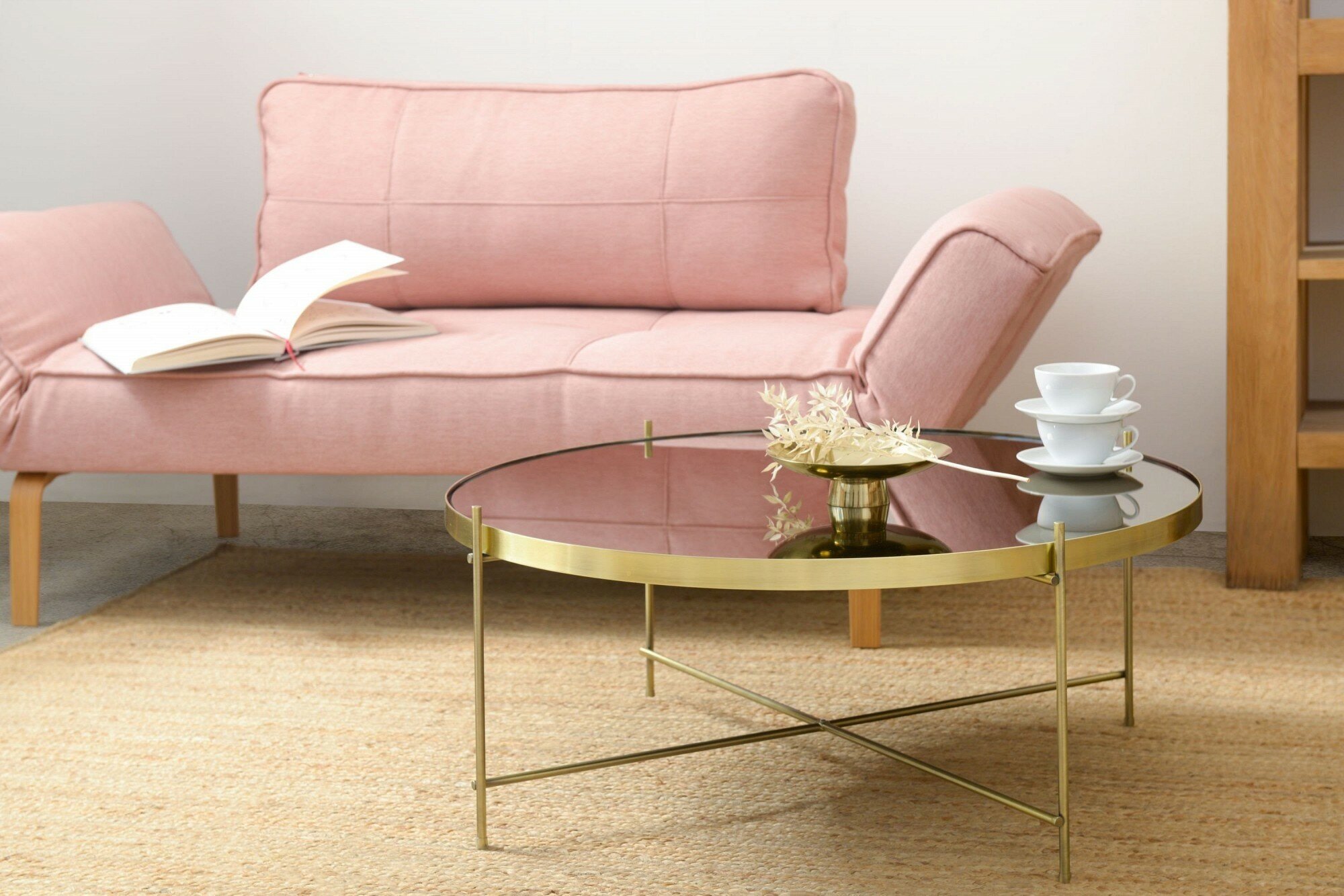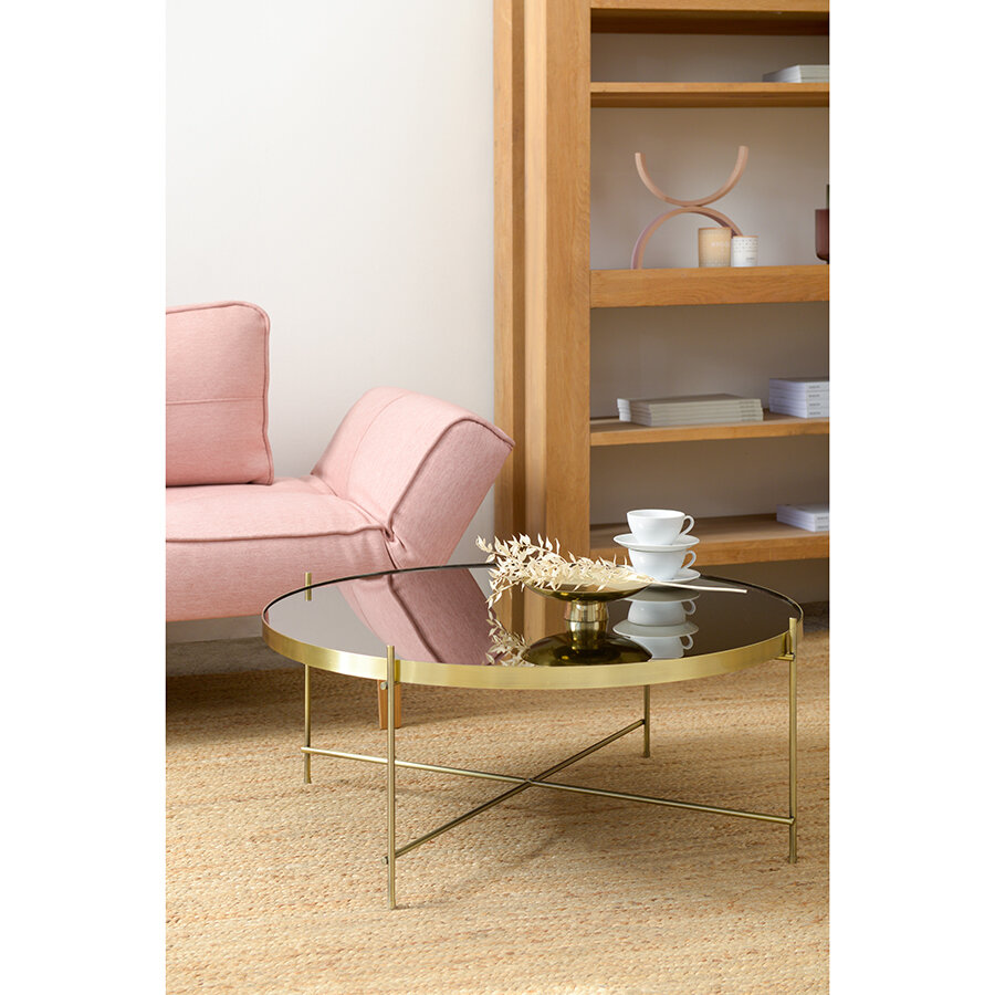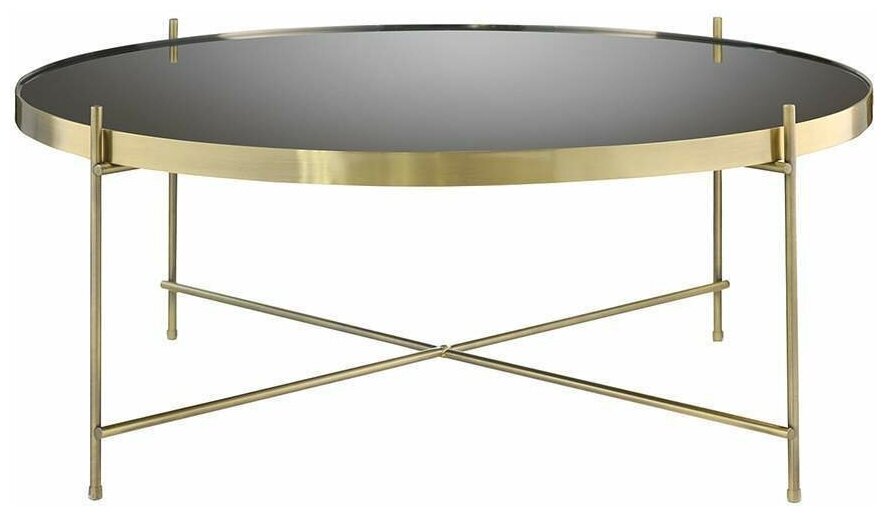 Материалы: столешница – коричневое зеркало, каркас – сталь с бронзовым покрытием. Размеры: диаметр – 84,8 см, высота – 33 см.
