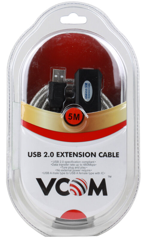 Кабель удлинитель VCOM USB2.0-AMAF 5.0 метров с усилителем [VUS7049] (VUS7049-5)