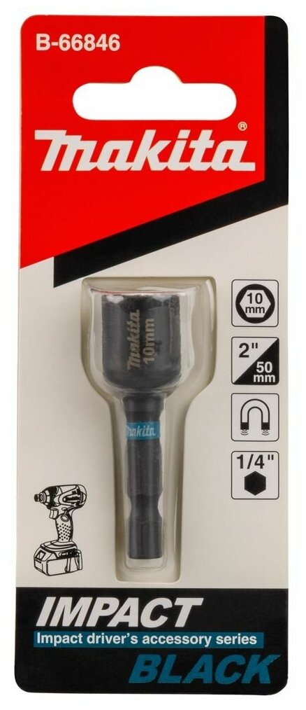 Головка Makita магнитная торцевая 1/4" 10x50мм (B-66846)