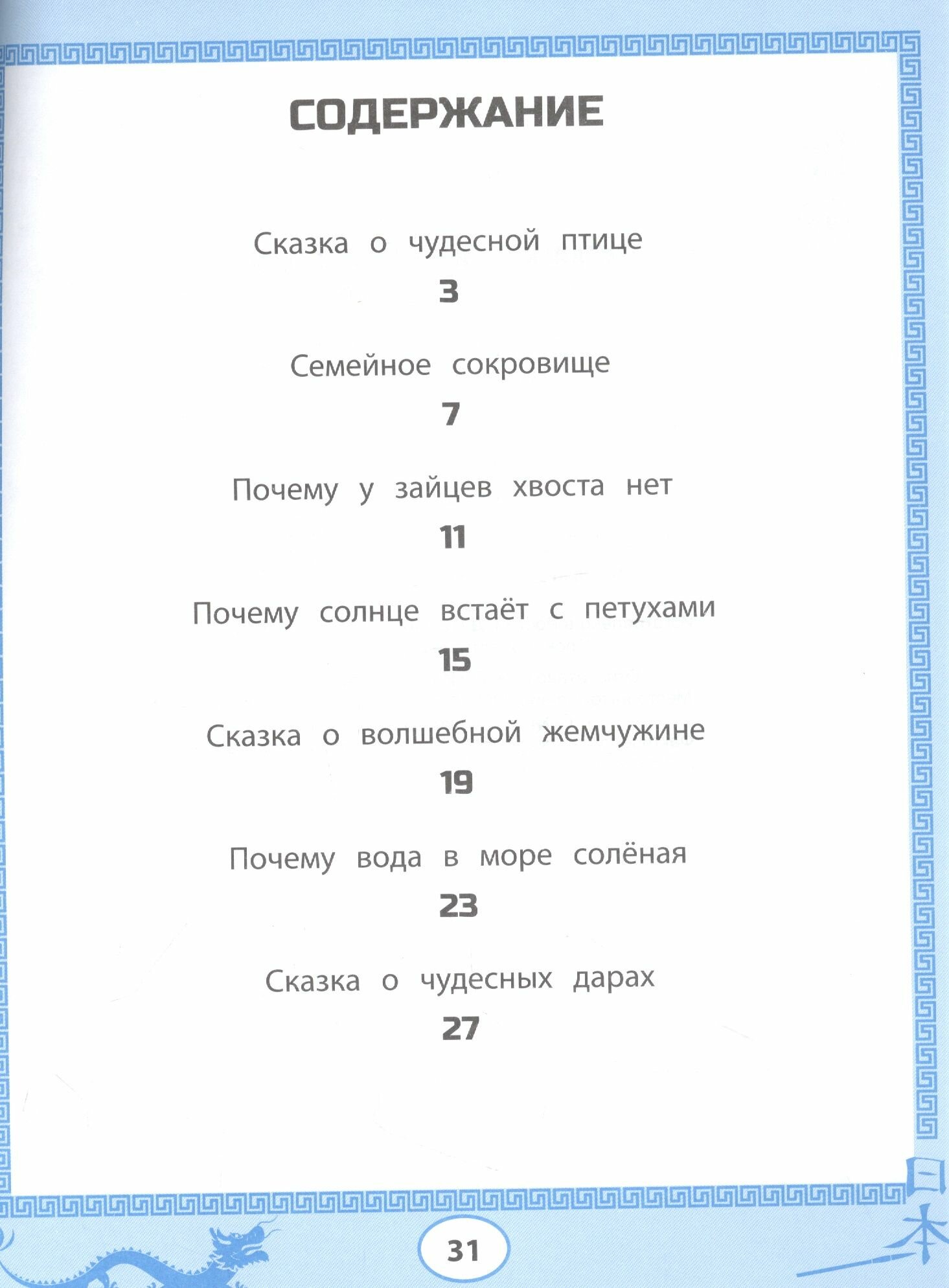 Хочешь заглянуть в мир, совсем не похожий на наш? Нет ничего проще. Стоит только раскрыть эту книгу - и ты окажешься в волшебном сказочном Китае, где рядом с людьми живут могучие драконы, где птицы и звери говорят человеческим языком, а самые обычные предметы могут таить в себе древнее волшебство. Здесь злой и жадный человек всегда наказан, а добрый и работящий - вознаграждён. Правда, здорово?