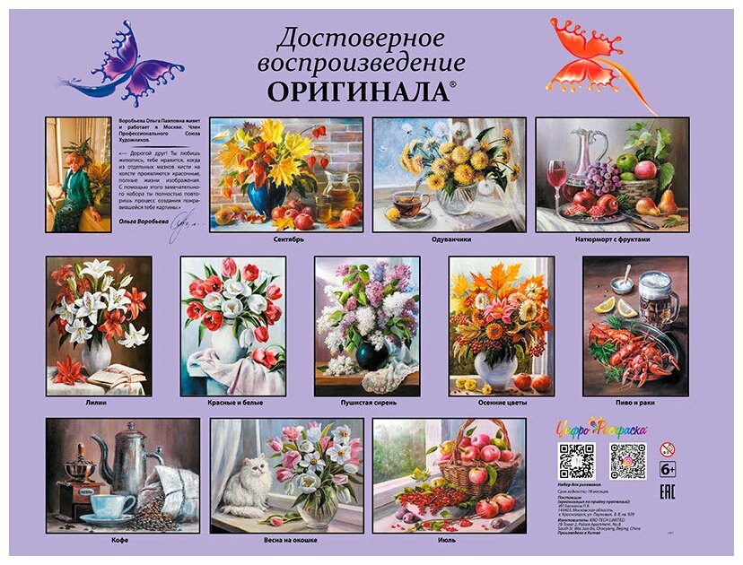Набор из серии "Натюрморты" от Ольги Воробьевой - это прекрасная возможность создать на холсте акриловыми красками свой маленький шедевр. Оптимальный размер 30*40 см, красивые проработанные сюжеты с хорошей детализацией, качественные комплектующие, для себя, для подарка, для любого интерьера! Рисуйте и наслаждайтесь прекрасными сюжетами! В каждый набор серии входит красивый авторский сувенир - магнит.