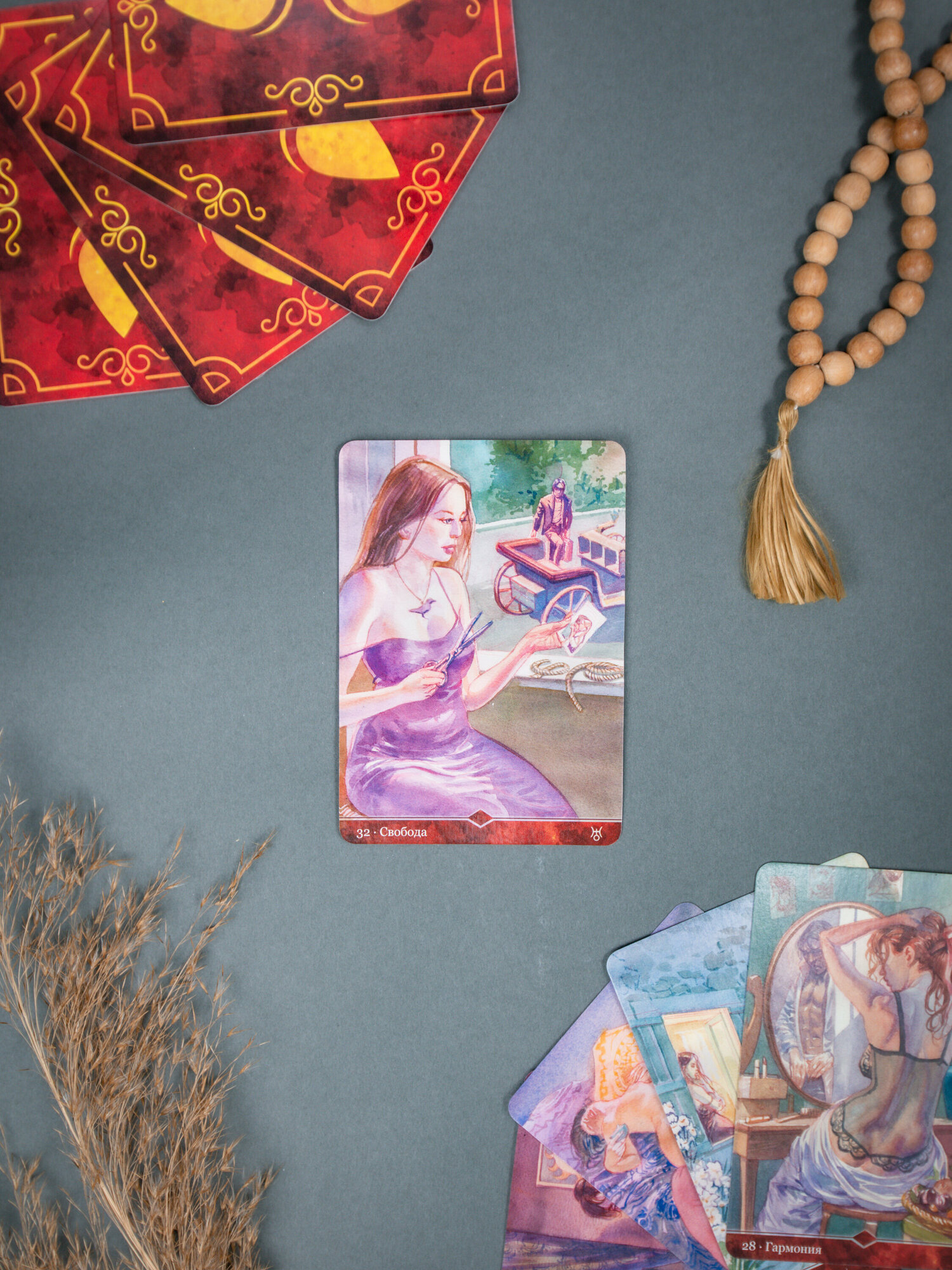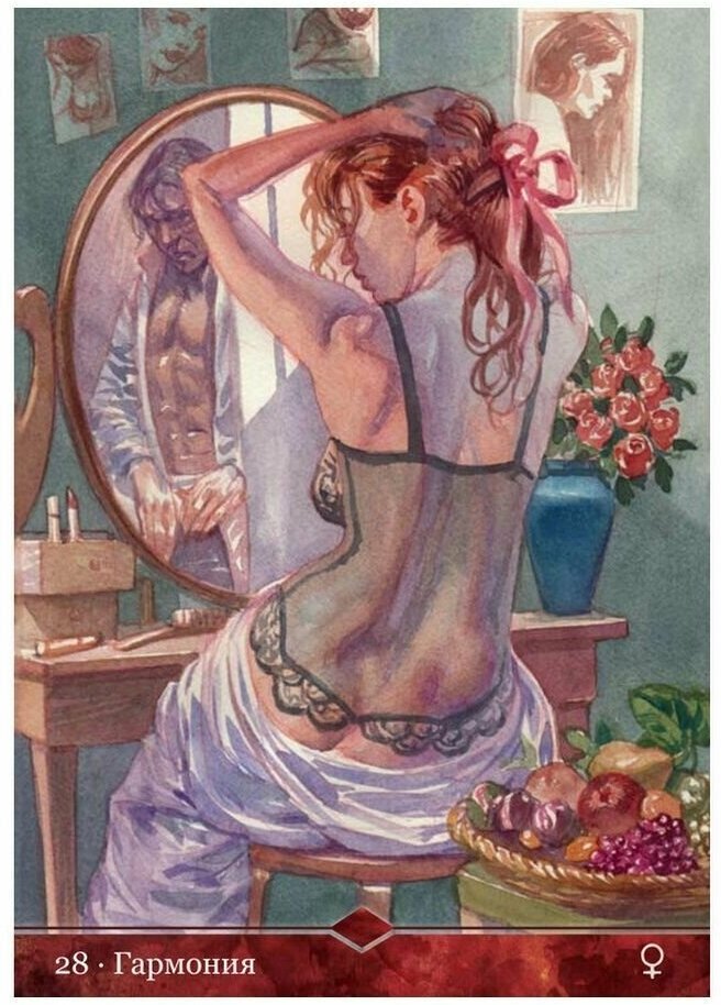 Качество карт даже лучше, чем таро ЛоСкарабео в плотных коробках. Почему-то у оракулов покрытие прочнее. Карты глянцевые, коробка матовая текстурированная. Многие карты очень похожи на определенные арканы таро магии наслаждений этих же авторов. Дизайн рубашки, похоже, сделан наспех.