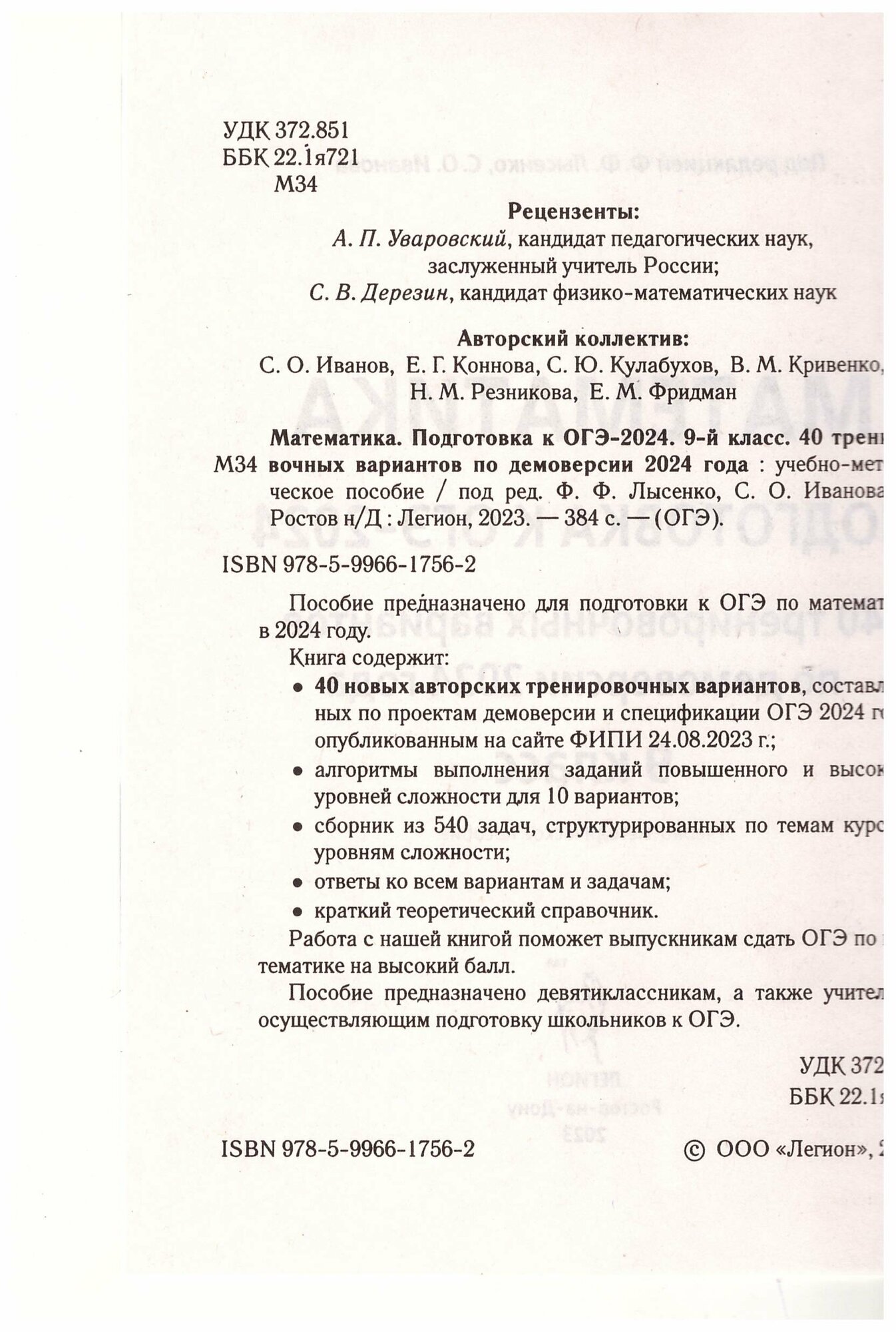 ОГЭ 2023 Математика. 9 класс. 40 тренировочных вариантов (Кулабухов Сергей Юрьевич, Коннова Елена Генриевна, Иванов Сергей Олегович); Легион, 2022