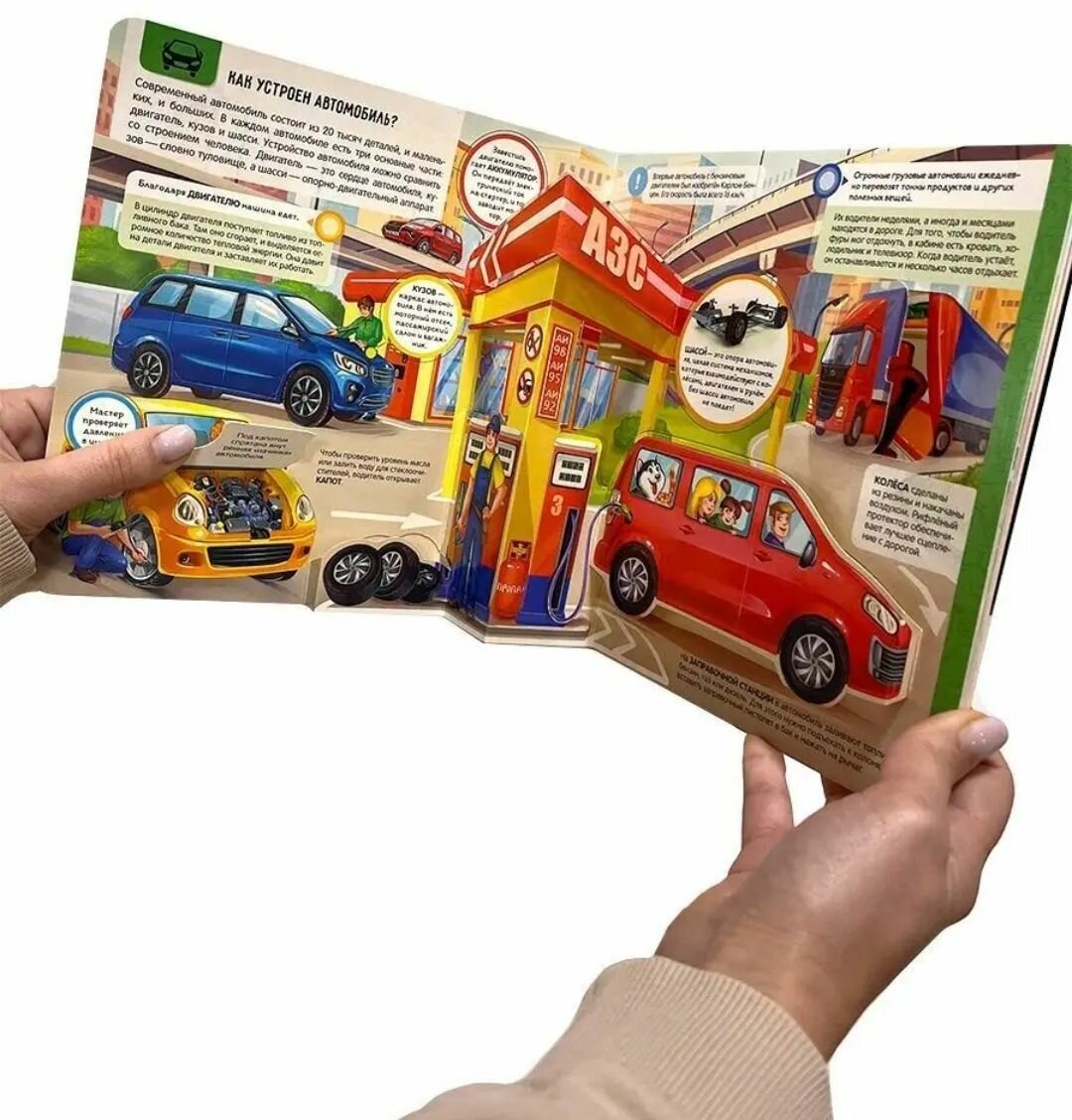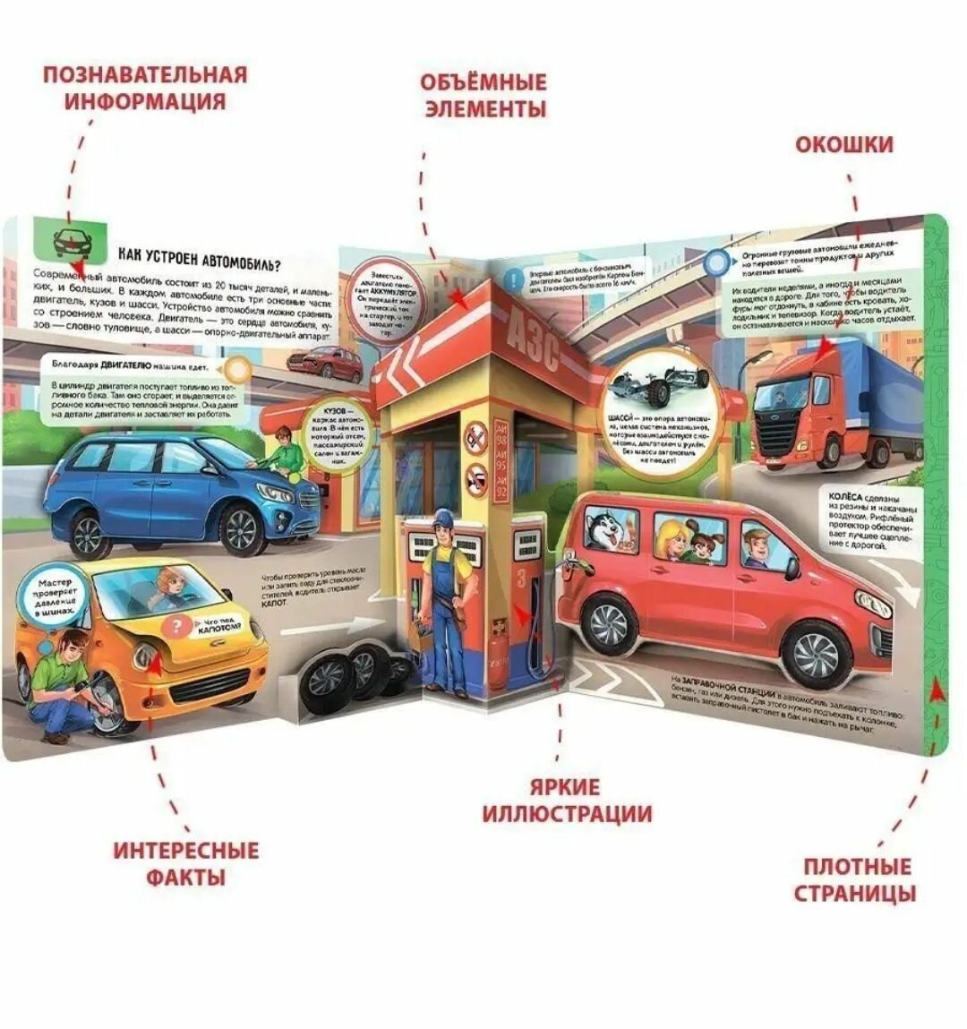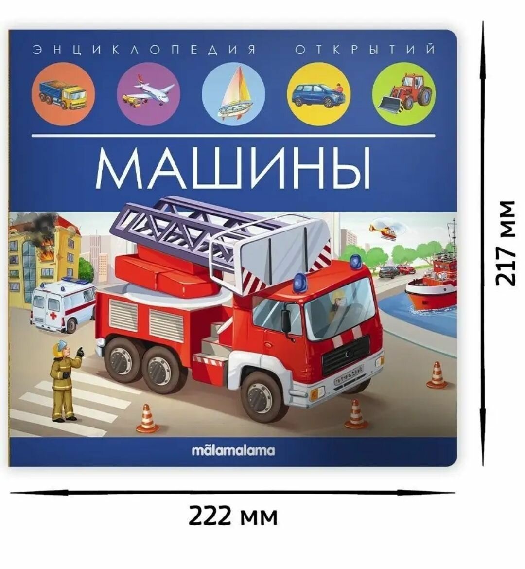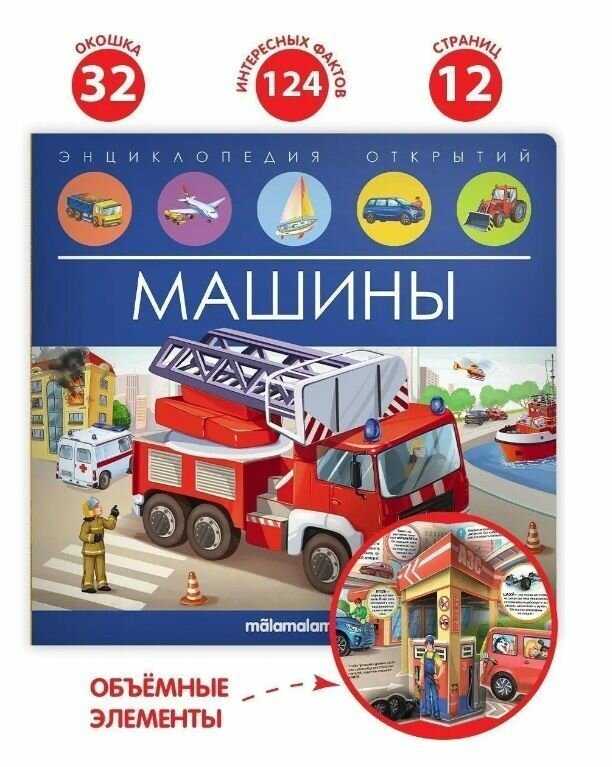 Книги из серии «Энциклопедия открытий» от торговой марки Malamalama — это набор настоящих энциклопедий на все популярные темы. Книга «Машины» рассказывает об устройстве автомобиля, о назначении различной специальной техники, об особенностях водного транспорта и самолётов. Объёмные POP-UP конструкции и красочные иллюстрации сделают изучение запоминающимся и лёгким.